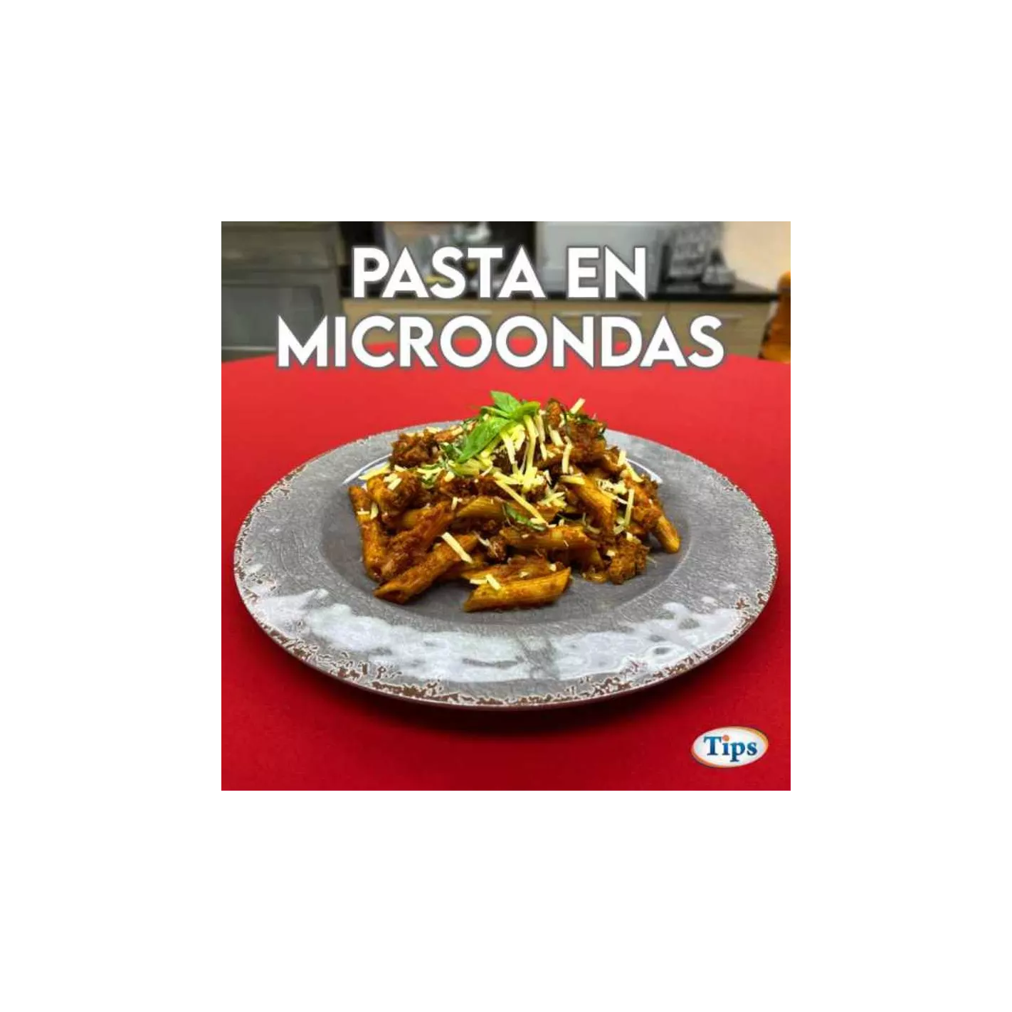 1-Colocar la carne en la olla especial para microondas, las picaduras, los condimentos, la pasta, el vino, la salsa, en este orden, tapar la olla asegurándonos que todo quede bien colocado en la olla especial, llevar de 15-20 mins al microondas.