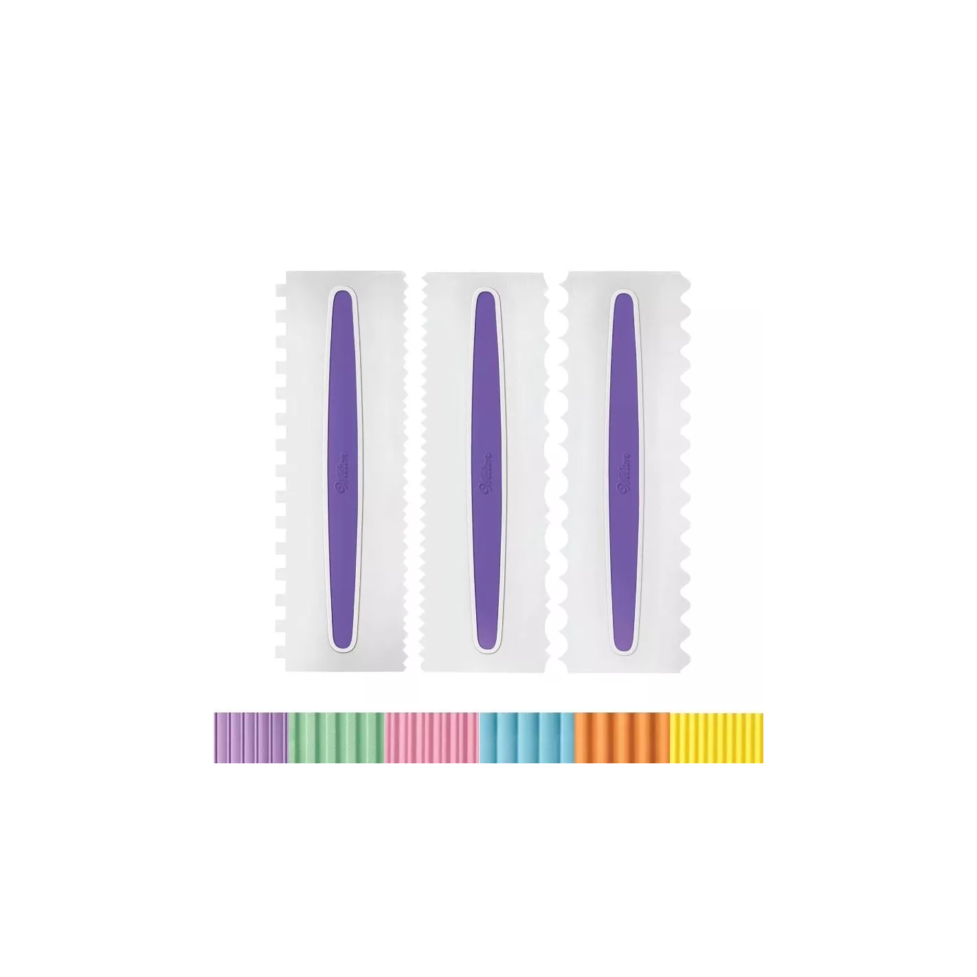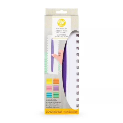 Con estos peines agregue fácilmente diferentes texturas y diseños al glaseado. Los tres peines se unen para un fácil almacenamiento. Hechos de plástico. Antes del primer uso y después de cada uso, lave con agua tibia y jabón. Use estos suministros de decoración de pasteles para desarrollar sus habilidades actuales o aprender algo nuevo.