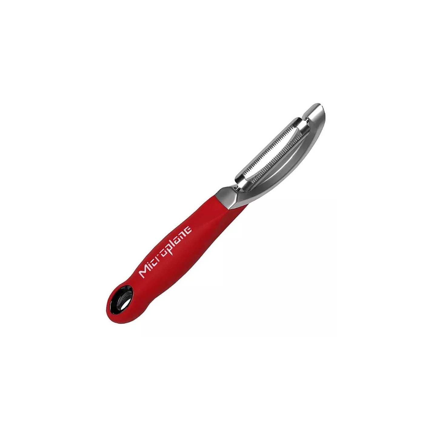 Con el pelador pela sin esfuerzo productos duros y blandos. Ya sea que esté trabajando con zanahorias, pepinos, papas, mangos o manzanas, la hoja flexible se ajustará a la forma del producto.