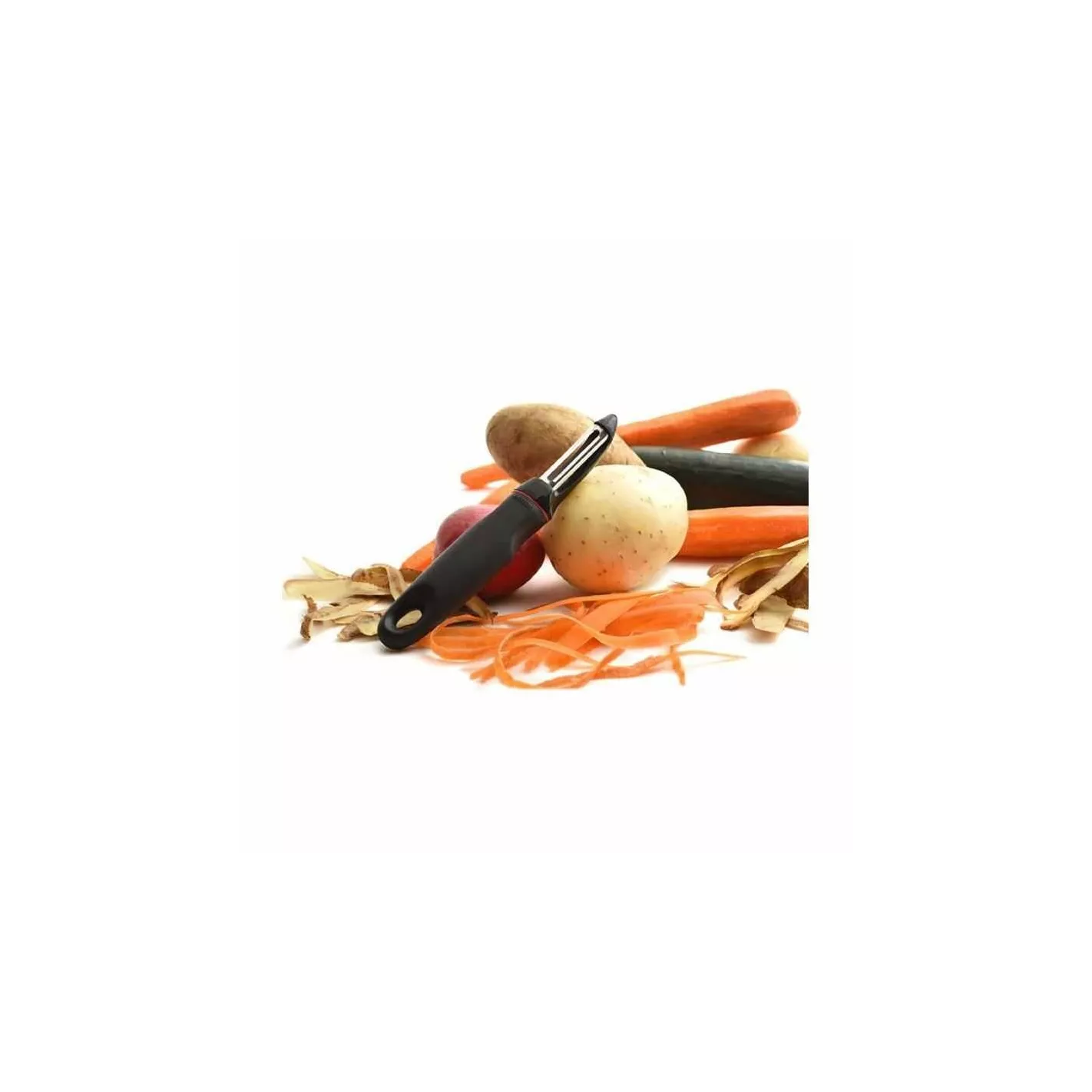 El pelador de mango Grip-EZ permite un agarre más fuerte, evitando así la fatiga y los calambres en las manos.El mango suave está diseñado para un agarre fuerte y cómodo. Hoja de acero inoxidable que se mantiene afilada. Diseñado ergonómicamente para adaptarse perfectamente para uso con la mano derecha o izquierda. Apto para el lavavajillas.