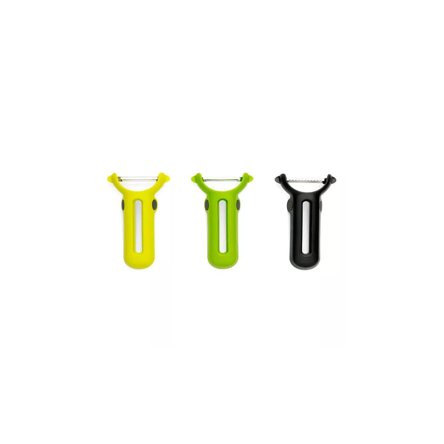 Los tres potentes peladores solucionan problemas, cuenta con las herramientas que necesitas para afrontar casi cualquier tarea de pelado. ¿Y cuando hayas terminado de pelar? Con sus diseños entrelazados, los peladores simplemente encajan entre sí. Esto hace que el juego de peladores de verduras también sea un verdadero ahorro de espacio.PESO NETO: KILOS = 0.082