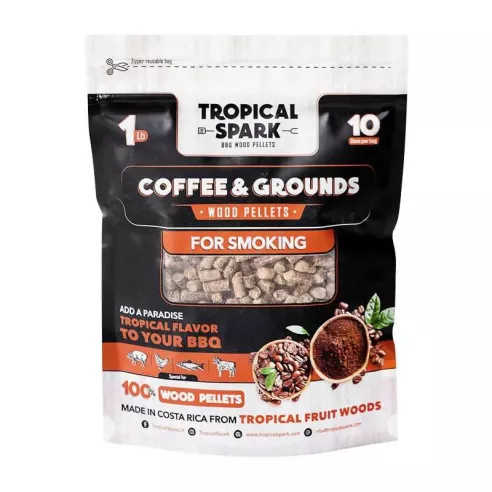Pellets para BBQ de Madera a Sabor a Cafe y Grano de 1 Libra TROPICAL SPARK 0798190200354