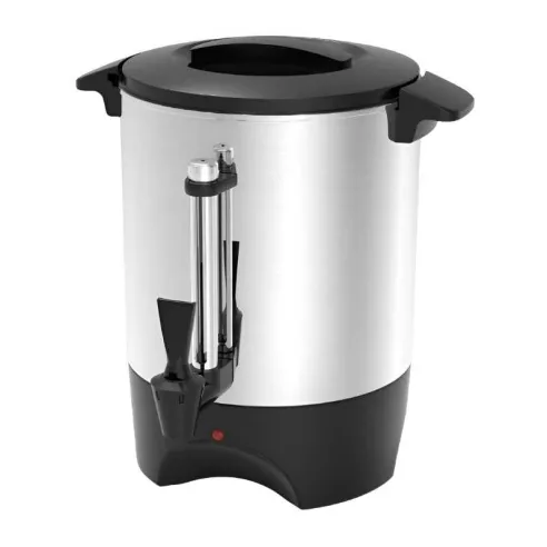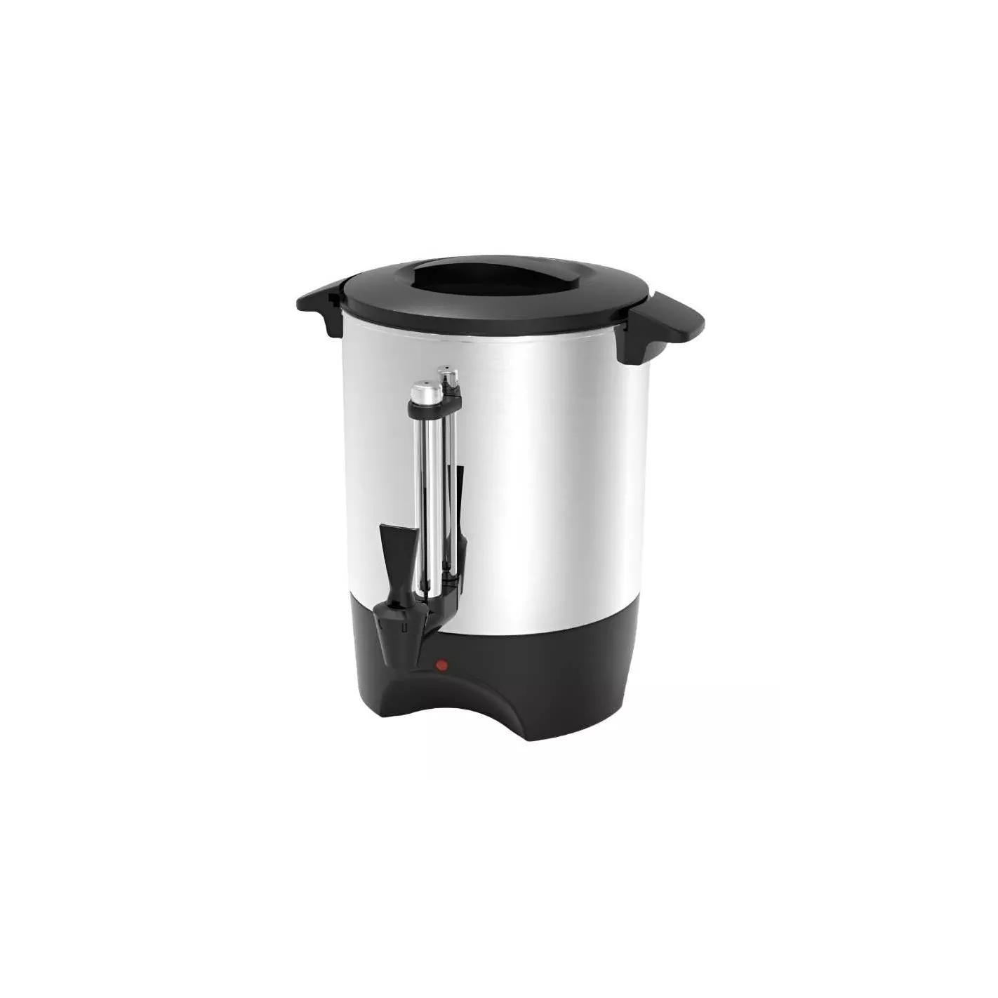 El percolador de café de 45 tazas es un electrodoméstico diseñado específicamente para preparar grandes cantidades de café de forma rápida y eficiente. Su diseño consta de un recipiente de acero inoxidable resistente que contiene el café molido y el agua. Tiene un sistema de filtrado interno que permite que el agua caliente circule a través del café molido, extrayendo su sabor y aroma de manera uniforme.