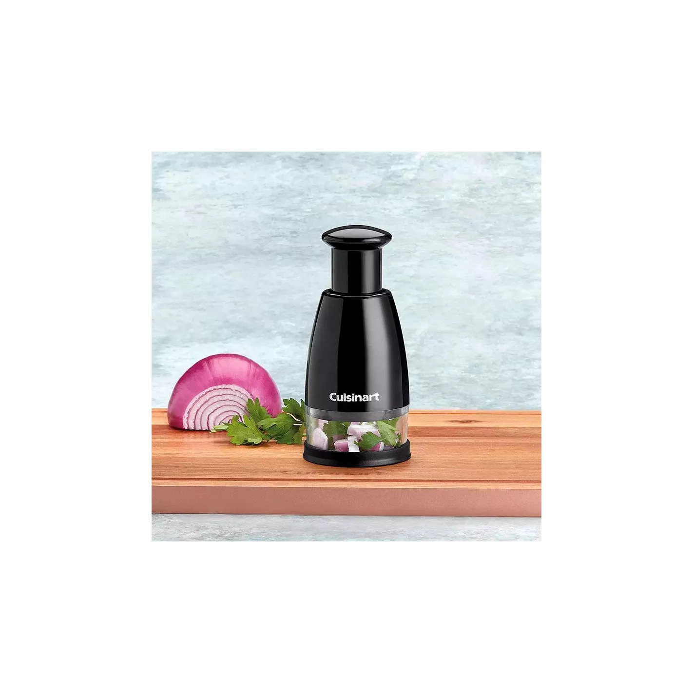 El Mini picador de Cuisinart es ideal para picar hierbas, ajo y más. La base le permite picar con o sin una tabla de cortar. Todas las piezas son aptas para lavavajillas.