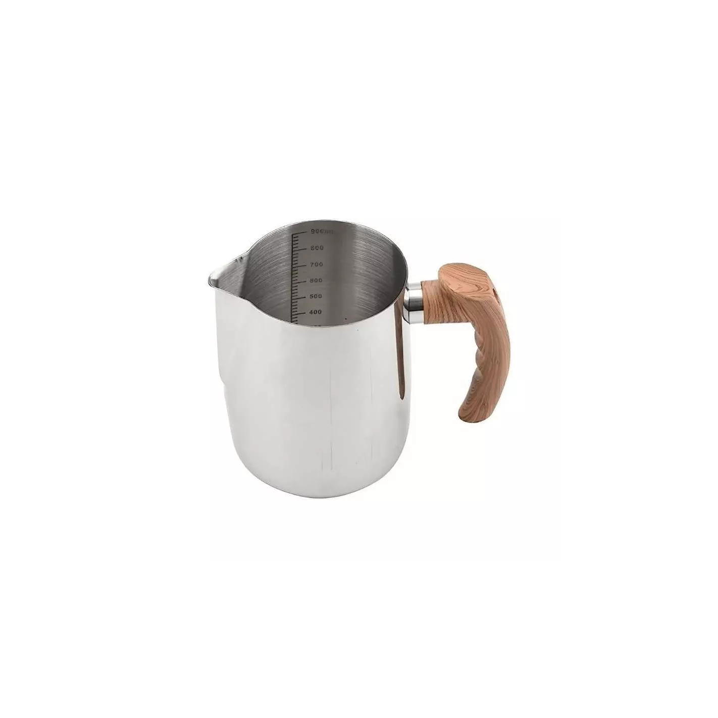 Este pichel es multifuncional y se puede usar para hacer arte de la leche y servir leche, crema, agua, jugo, mezclas para rebozar, batidos y más. Tiene una escala doble grabada con láser que nunca se desvanece, la escala doble facilita el control de la cantidad de leche o crema para cada taza de café.