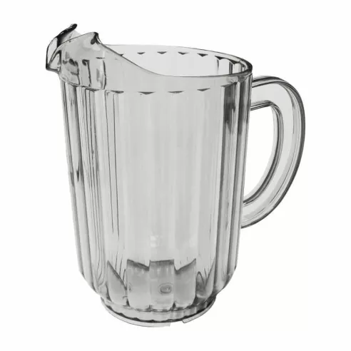 La jarra Master Chef está fabricada con policarbonato duradero para resistir roturas y astillas. Diseñado para servir bebidas frías sin la preocupación de romperse. Esta jarra de plástico es más liviana que una jarra de agua de vidrio, lo que significa menos fatiga para el personal. Esta jarra también cuenta con un pico a prueba de goteo para evitar fugas y goteos mientras se sirve.
