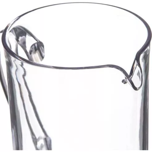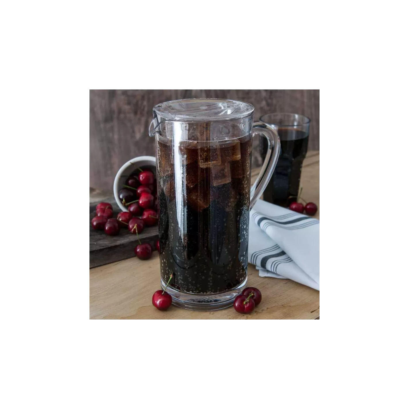 La jarra Elan está hecha de policarbonato, que es resistente a las manchas y grietas. Con sus gruesas paredes y fondo óptico, la jarra tiene el aspecto de un vidrio pero es resistente a la rotura. Es seguro en temperaturas que oscilan entre -40° y 212° grados Fahrenheit. Dado que la jarra mide 9.6 pulgadas de alto y puede contener 58 onzas, es perfecta para servir agua, té helado y limonada.