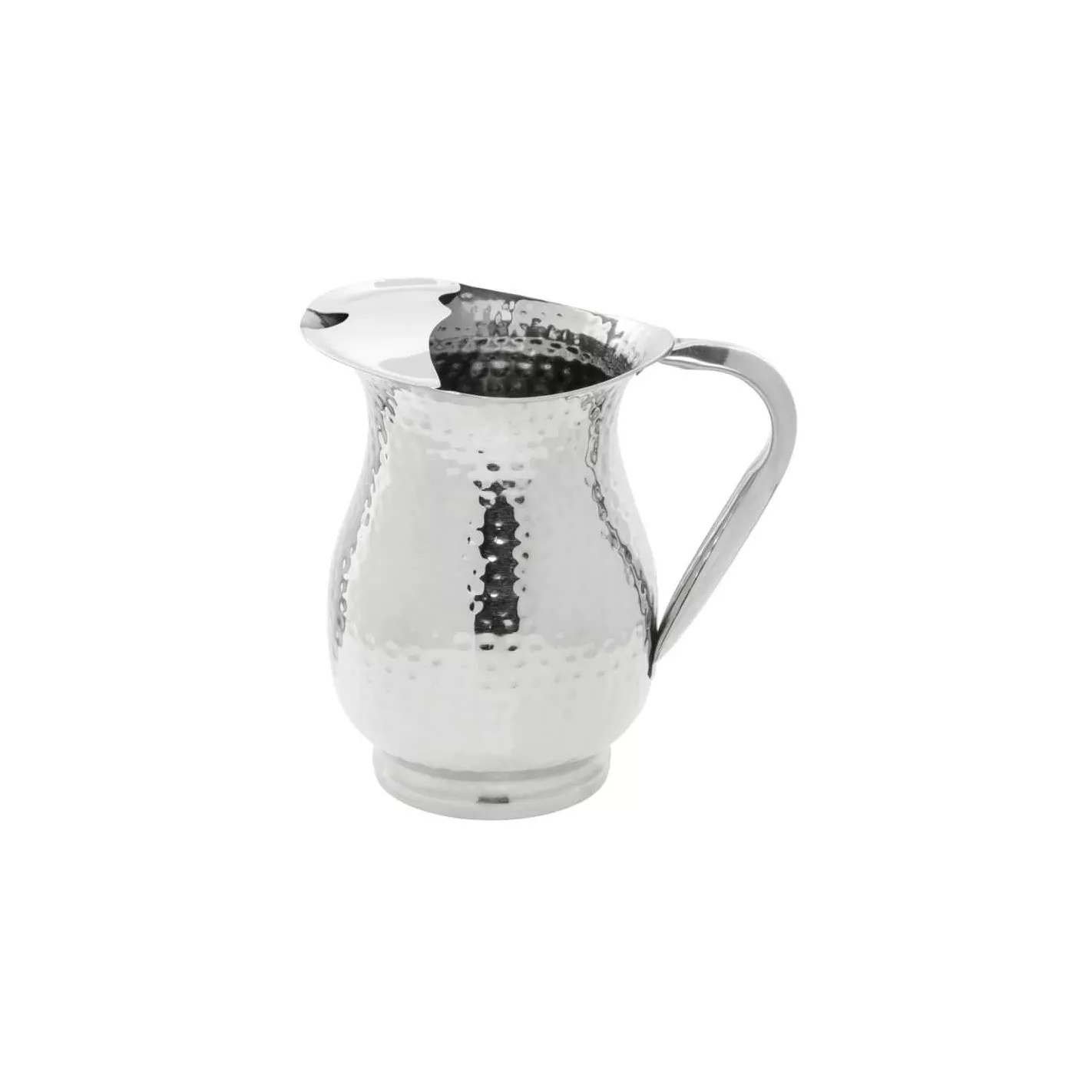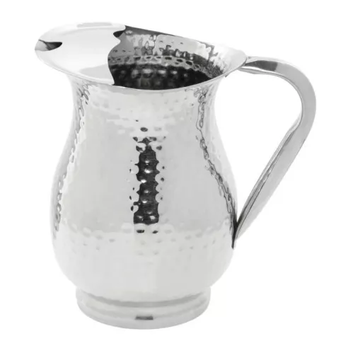 Pichel de agua martillada no rayará ni decolorará, hecho de material de acero inoxidable. La clásica forma de campana permite que se almacene fácilmente en la mayoría de cualquier lugar y un suave labio que permite que las bebidas y el hielo se viertan con un mínimo de salpicaduras.