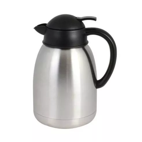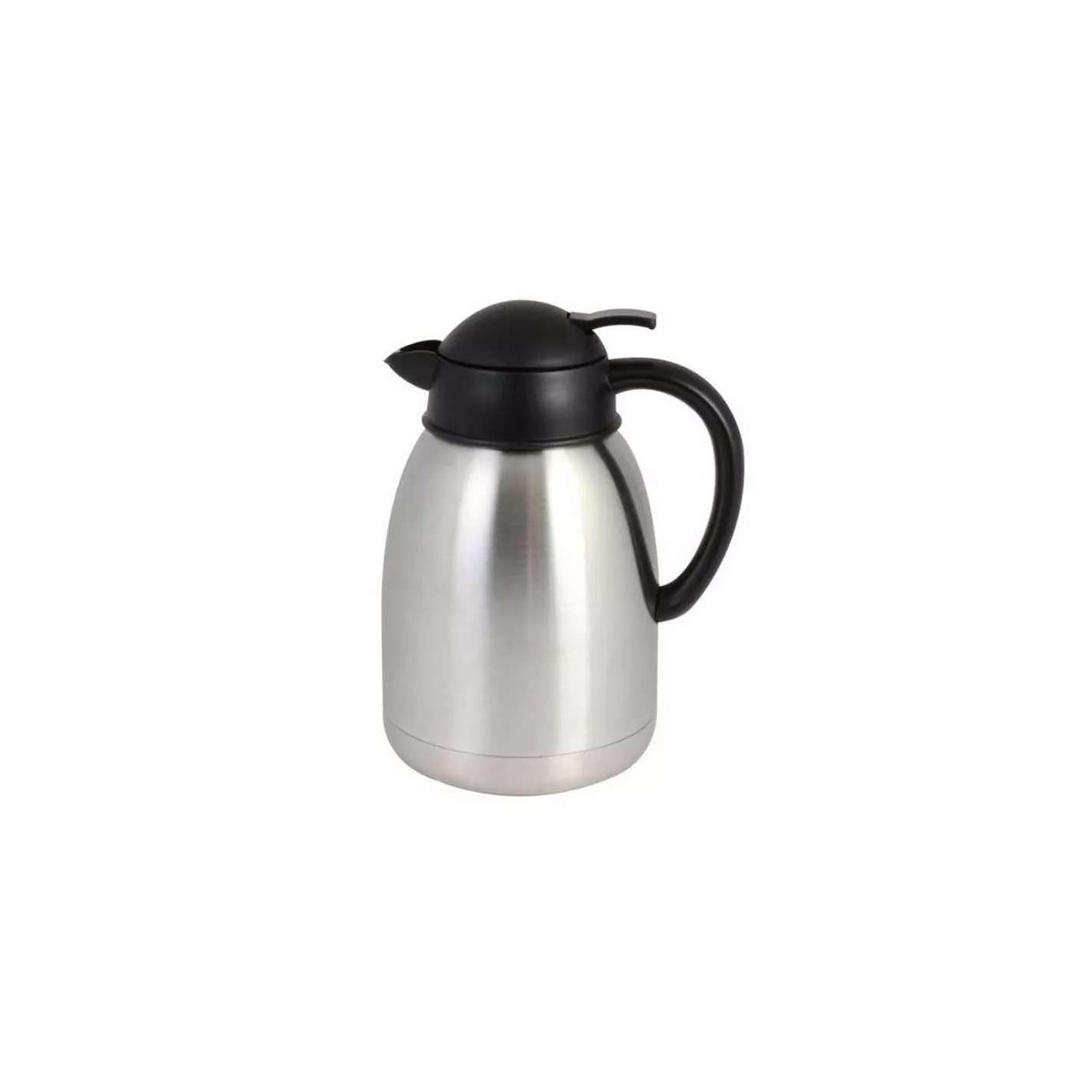 Impresione a sus invitados con este pichel servidor con botón pulsador en acero inoxidable de 1.9 litros para un autoservicio rápido en su estación de desayuno. Diseñado para operar con una sola mano, este servidor de café tiene una parte superior con botón que dispensa fácilmente sus bebidas, mientras que su mango de plástico proporciona un agarre cómodo. Gracias a su aislamiento al vacío, este servidor de bebidas calientes ofrece una excelente retención de calor y su construcción de acero inoxidable resiste el uso intensivo.