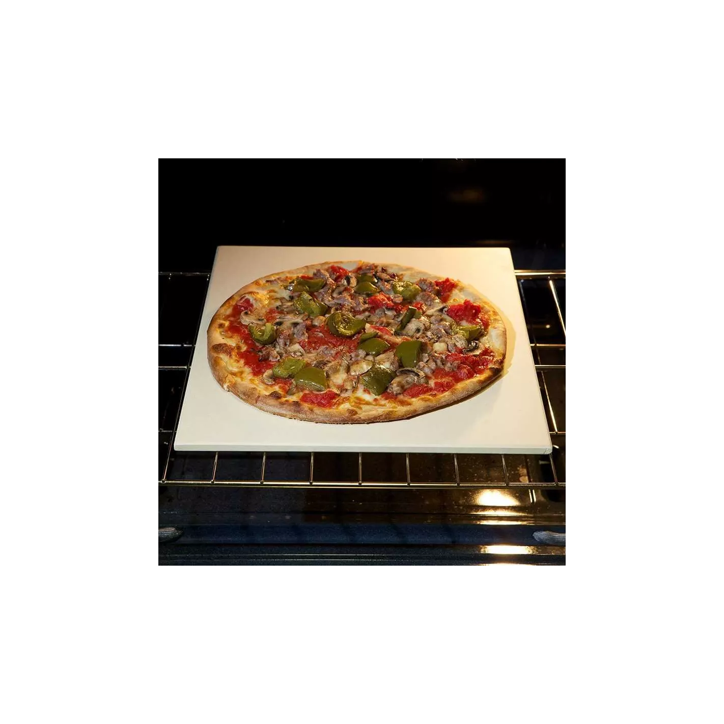 ¿Quieres hornear pizzas al estilo pizzería en la comodidad de tu hogar? ¡Entonces necesitas esta piedra de pizza cuadrada! La piedra tiene 14 pulgadas de ancho y 15 pulgadas de profundidad, un tamaño ideal para hornos / microondas más pequeños. Hecho de gres, proporciona una distribución uniforme del calor y absorbe el exceso de humedad para hacer costras más ligeras y crujientes. Ideal para pizzas caseras o congeladas, e incluso para hornear pan crujiente. Panecillos, galletas, galletas, tortillas y más! Recetas e instrucciones de cuidado incluidas, maneje la piedra con cuidado. Las posibilidades de alimentos perfectamente horneados son infinitas. ¡Libere su vida de pizzas de pizza suaves, empapadas y endebles con esta piedra para pizza!