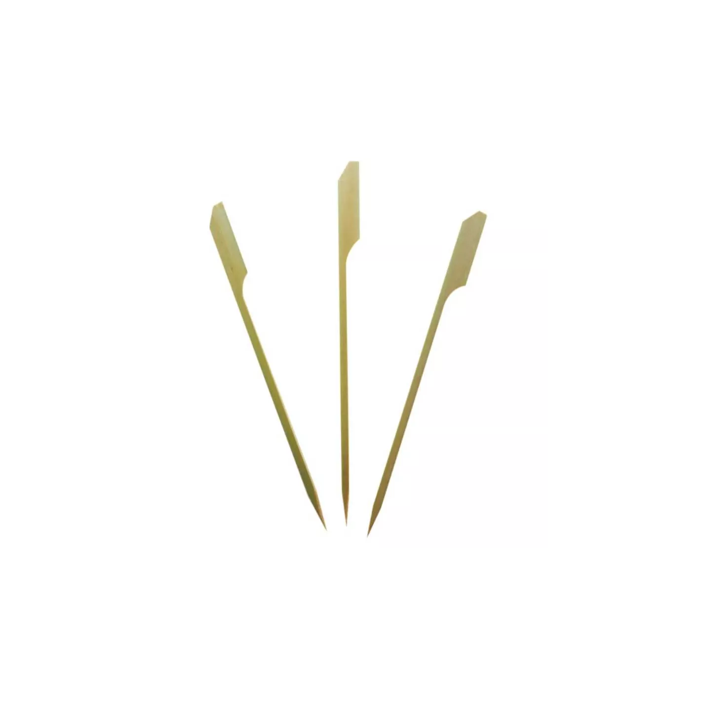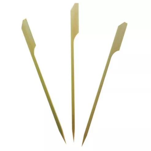 De bambú desechable estos pinchos de cóctel con forma plana en la parte superior son de un material sostenible y respetuoso con el medio ambiente. Bonito y práctico, cómodo de usar, también ideal para adornos de mesa, para servir aperitivos en reuniones familiares, en cumpleaños, reuniones sociales entre otras.