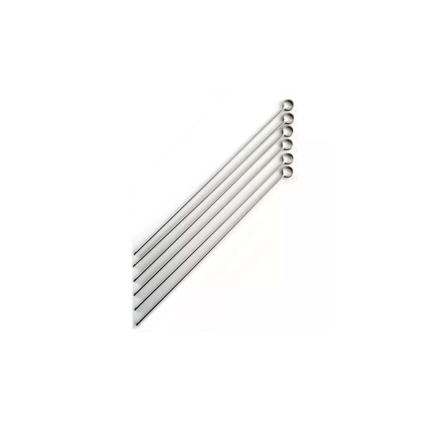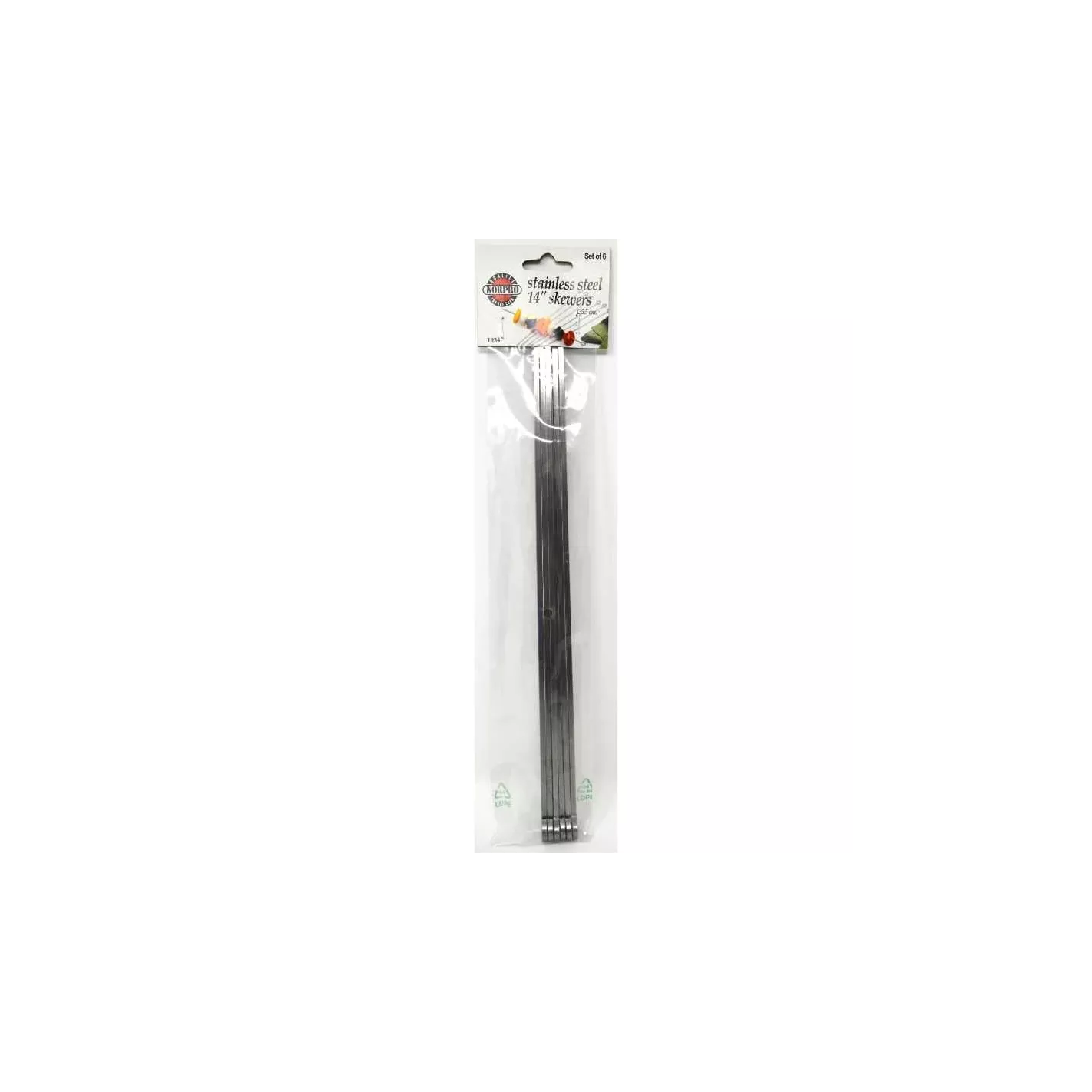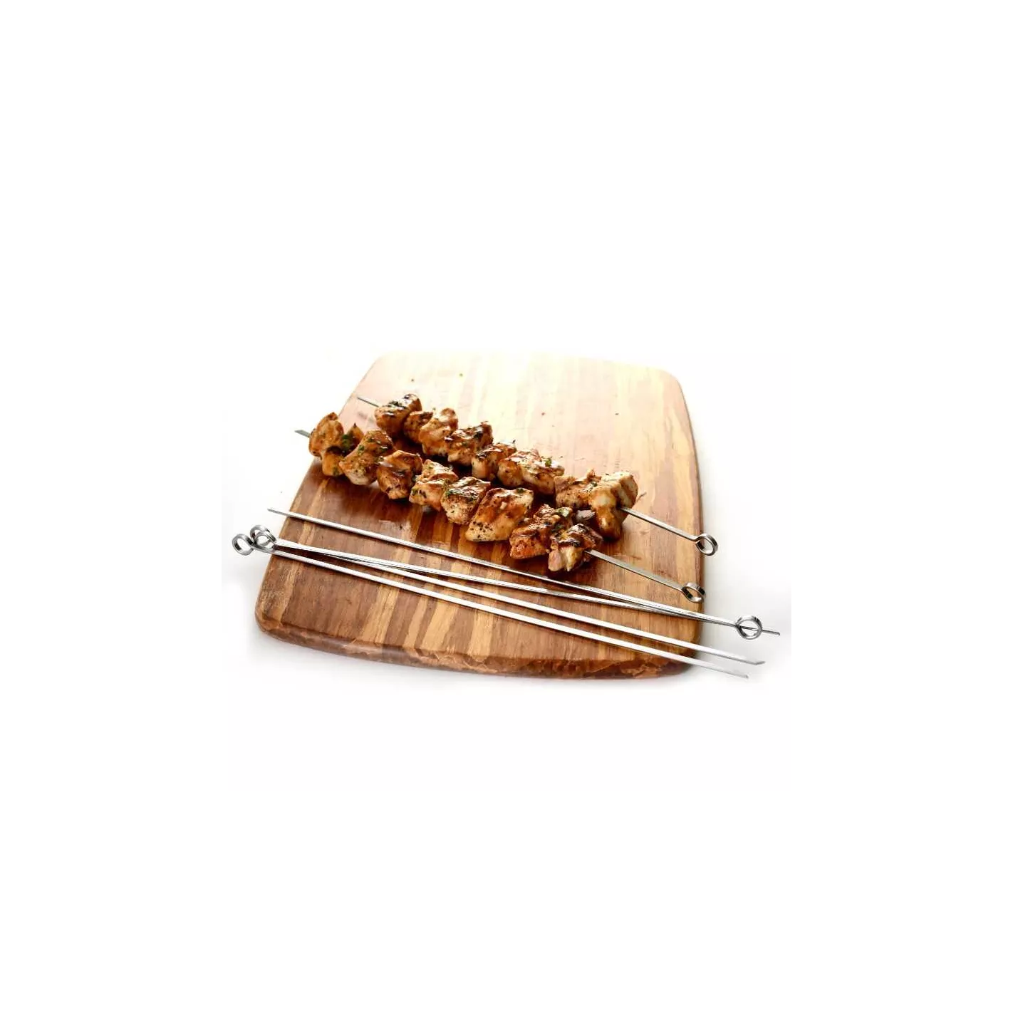 Ideales para asar en el patio trasero y acampar en verano, estas brochetas resistentes al calor son esenciales para cualquiera que disfrute cocinar a fuego abierto. Con un diseño plano, estos pinchos sostienen los alimentos de forma segura y evitan que los alimentos giren cuando los gira.MATERIAL: ACERO INOXIDABLE