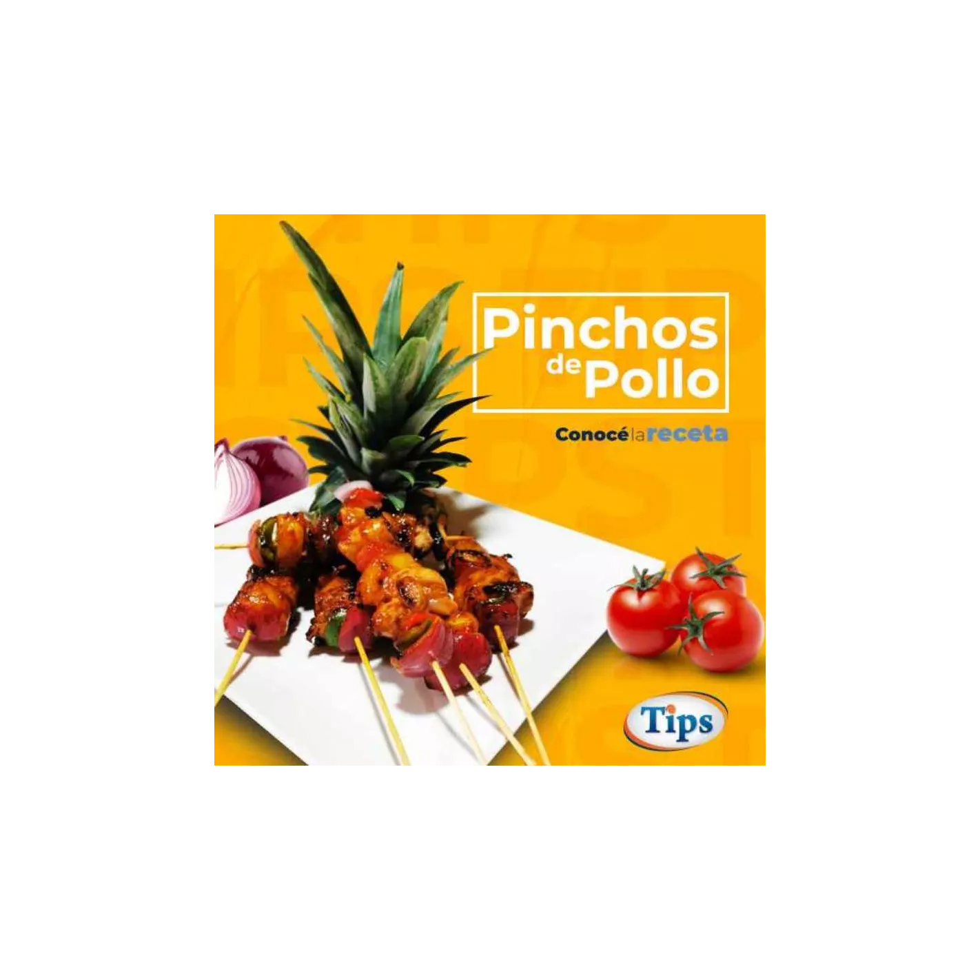 3.Para armar coloque cebolla, chile dulce, pollo, piña, repita el proceso y dele el tamaño deseado a cada pincho.