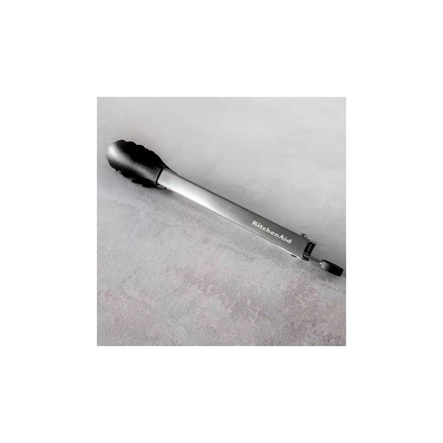 Estas pinzas para servir de KitchenAid están hechas de acero inoxidable resistente con puntas de silicona y están diseñadas para ofrecer el máximo rendimiento. La silicona es resistente al calor hasta 260 °C/500 °F y es adecuada para usar en superficies antiadherentes, lo que las hace ideales para revolver alimentos o servir directamente de las sartenes. Un mecanismo de bloqueo hace que sean fáciles de guardar en un cajón o en un portautensilios.