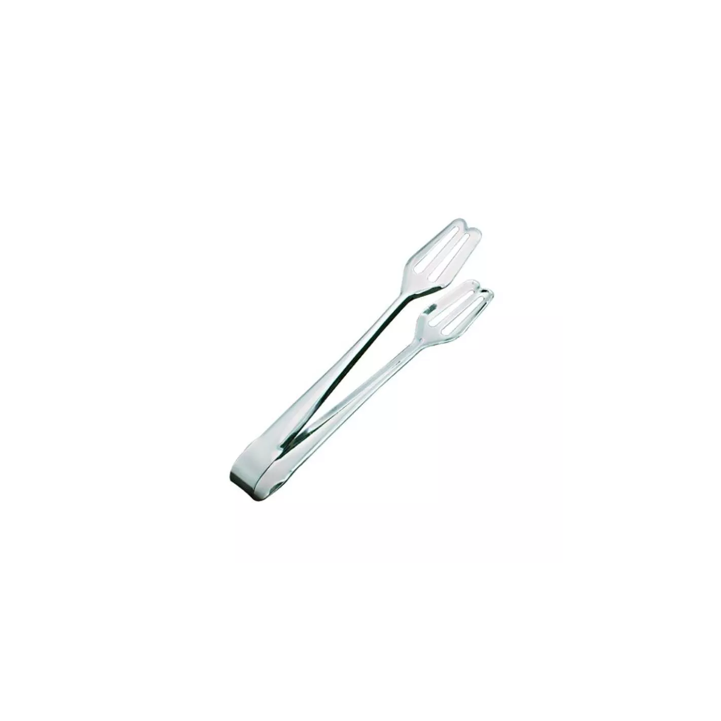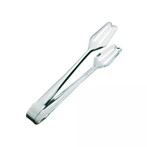 Pinza ranurada, fabricada en acero inoxidable. Esta pinza es un producto ideal para servir pasteles, tortas, etc. Cabezales largos y ondulados que confieren fácil manipulación y agarre mientras se sirve además de evitar derrames.