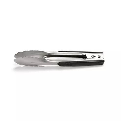 Hecho de acero inoxidable de calibre profesional y duradero, estas pinzas versátiles son ideales para servir comida en sus barbacoas de verano y eventos especiales. Los extremos festoneados evitan el rayado de las sartenes durante la cocción y permiten una fácil liberación de los alimentos, lo que reduce el desorden. Incluye manijas suaves, cómodas y de santopreno para un agarre más fuerte y para evitar la fatiga y los calambres en las manos. Se almacena fácilmente con mecanismo de bloqueo.LARGO: PULGADAS = 9