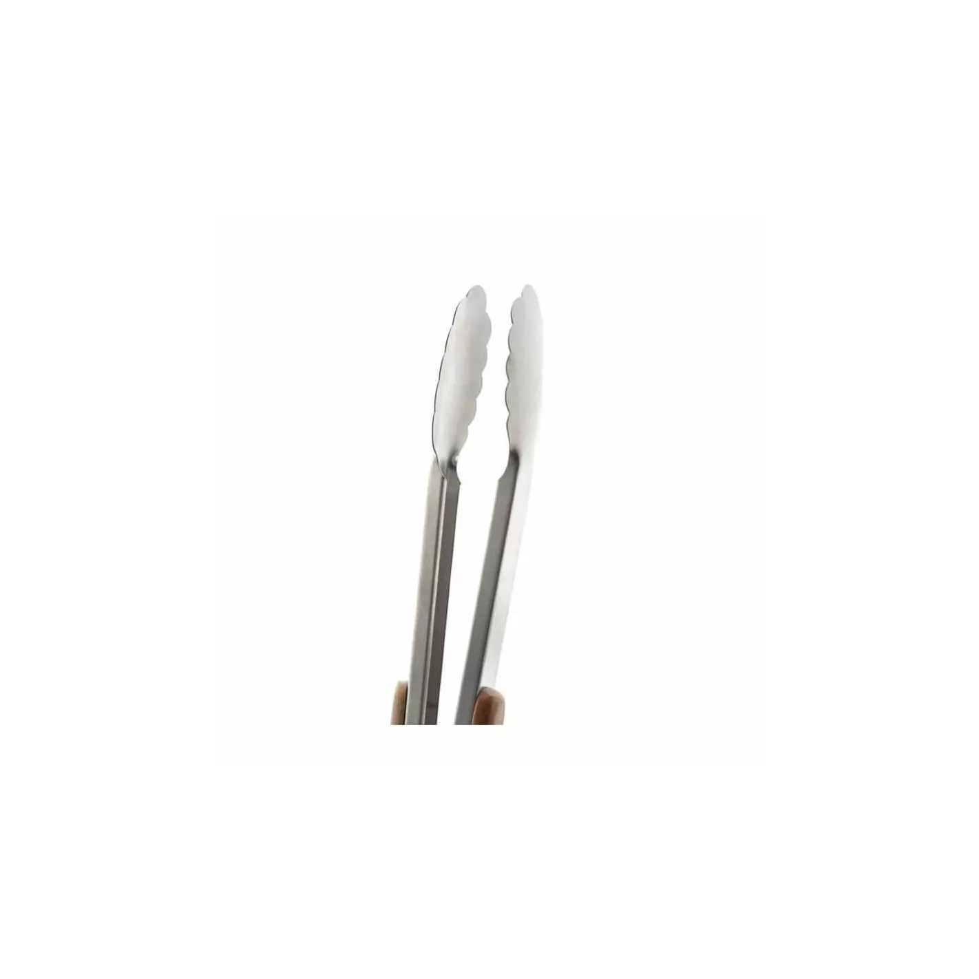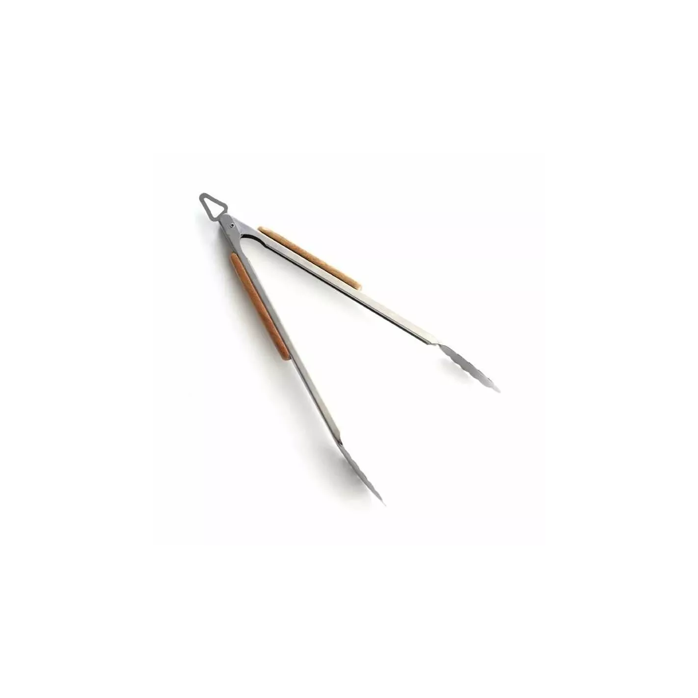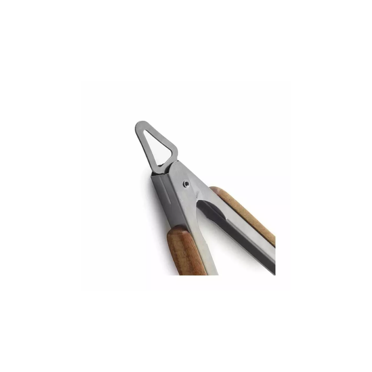 Ideal para asar y servir, pestaña de bloqueo, empujado hacia abajo mantiene las pinzas juntas para un fácil almacenamiento, tire hacia arriba para abrir. El mango largo y cómodo mantiene las manos alejadas del calor mientras mantiene el control. Mangos de acero inoxidable y madera duradera asegurados con remaches. Bucle para colgar para un fácil almacenamiento.
