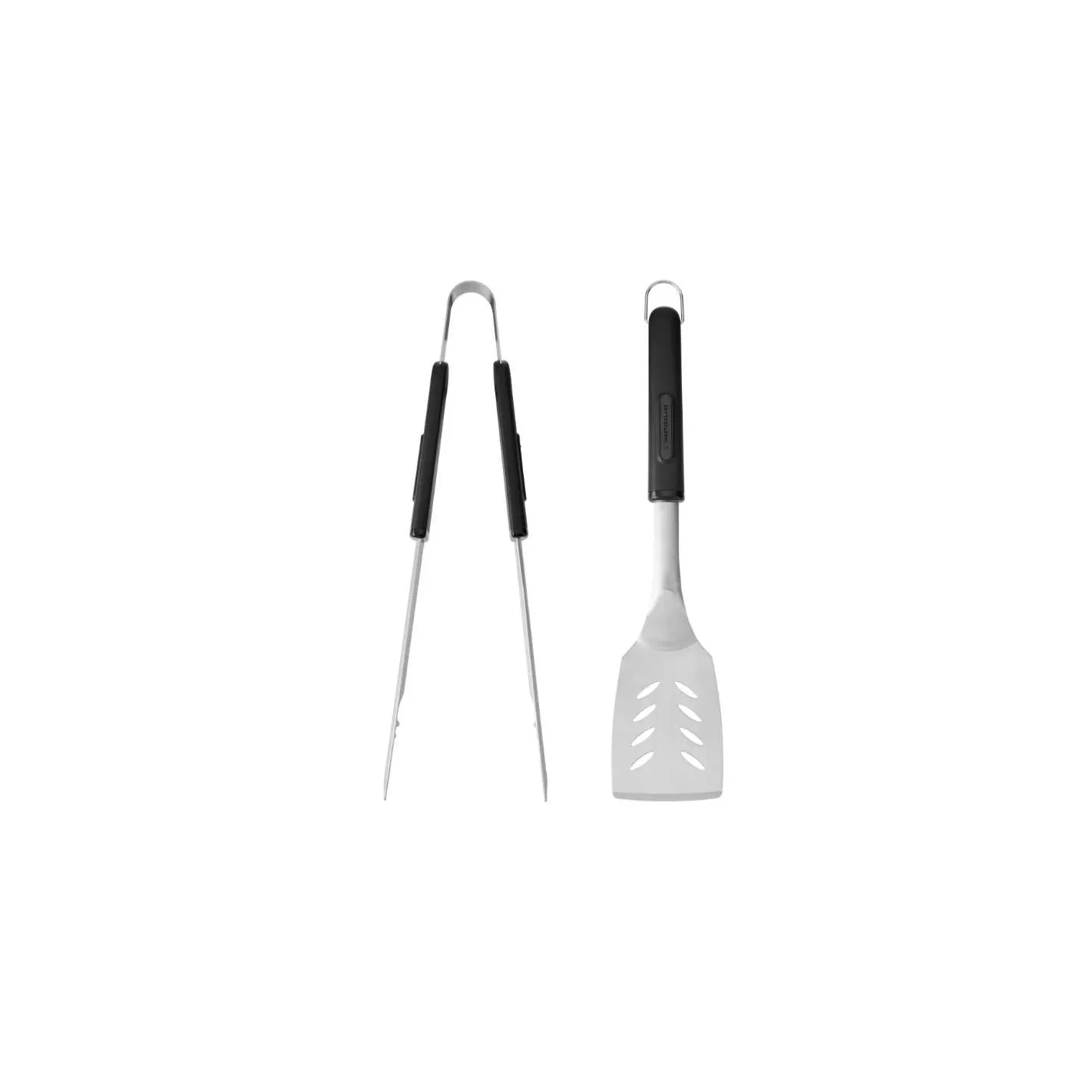 El juego de pinzas y espátula para barbacoa es esencial para las tareas de parrilla. Fabricado con materiales de primera calidad, este juego incluye pinzas de acero inoxidable de 41 cm y una espátula de acero inoxidable de 42 cm, ambas con mangos negros mate. Con la seguridad como prioridad, estas herramientas de gran tamaño con mangos resistentes al calor brindan protección contra el calor, manteniendo sus manos seguras y protegidas durante las sesiones de parrilla.