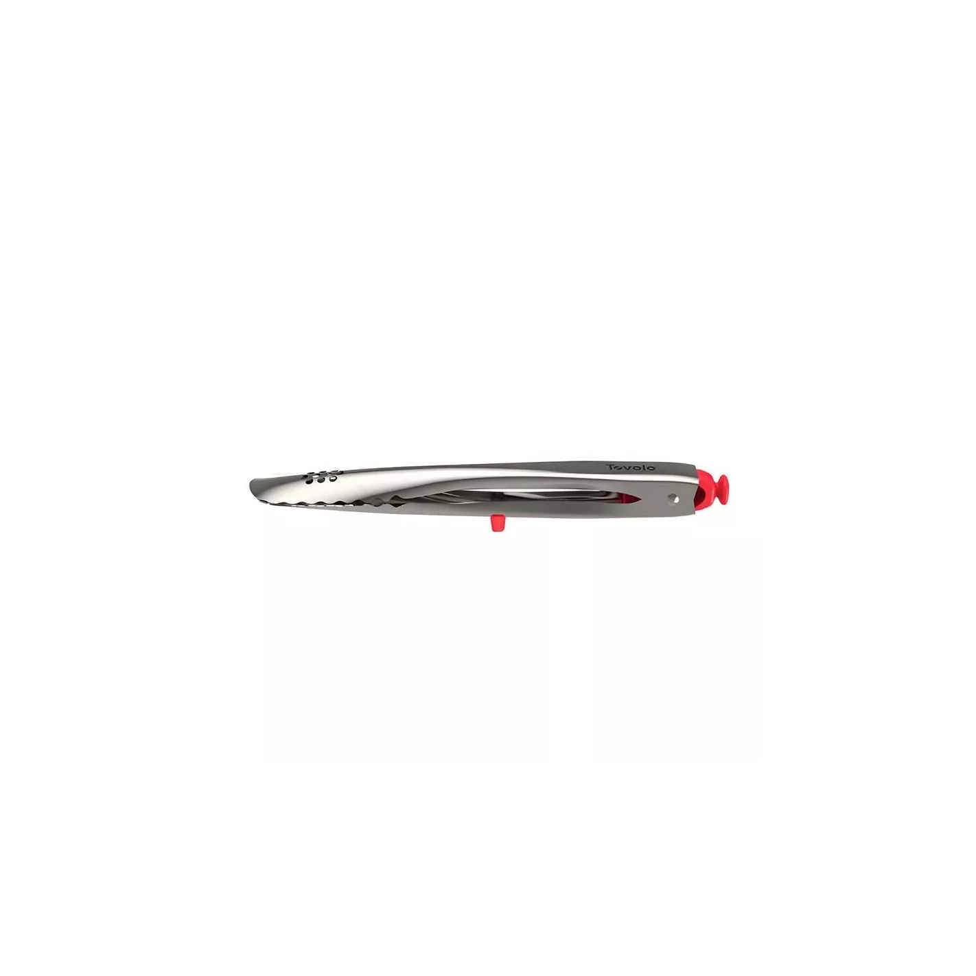 Las pinzas de acero inoxidable de 9” de Tovolo son perfectas para el chef ocupado y cuentan con un mecanismo de clic y bloqueo que le permite abrir y cerrar las pinzas con una sola mano. Las pinzas de acero inoxidable son resistentes a las manchas y aptas para alimentos para crear la mejor herramienta de cocina posible. El acero inoxidable es resistente al calor hasta 600 grados Fahrenheit, por lo que puede soportar la estufa, el horno o la parrilla. Mantenga las pinzas cerradas con el práctico mecanismo de bloqueo.