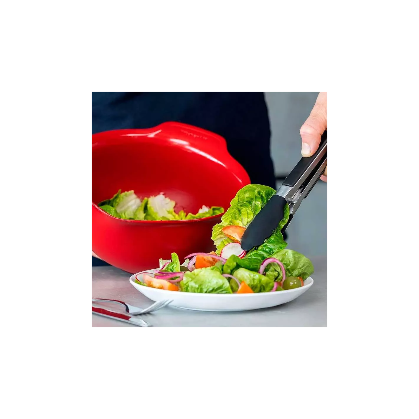 Estas pinzas con punta de silicona de KitchenAid, de 30 cm, están hechas de acero inoxidable resistente con puntas de silicona y están diseñadas para el uso diario. La silicona es resistente al calor hasta 260 °C/500 °F y es adecuada para usar en superficies antiadherentes, lo que las hace ideales para revolver alimentos o servir directamente de las sartenes. Un mecanismo de bloqueo lateral facilita el uso con una sola mano y también son aptas para lavavajillas para una limpieza sencilla.