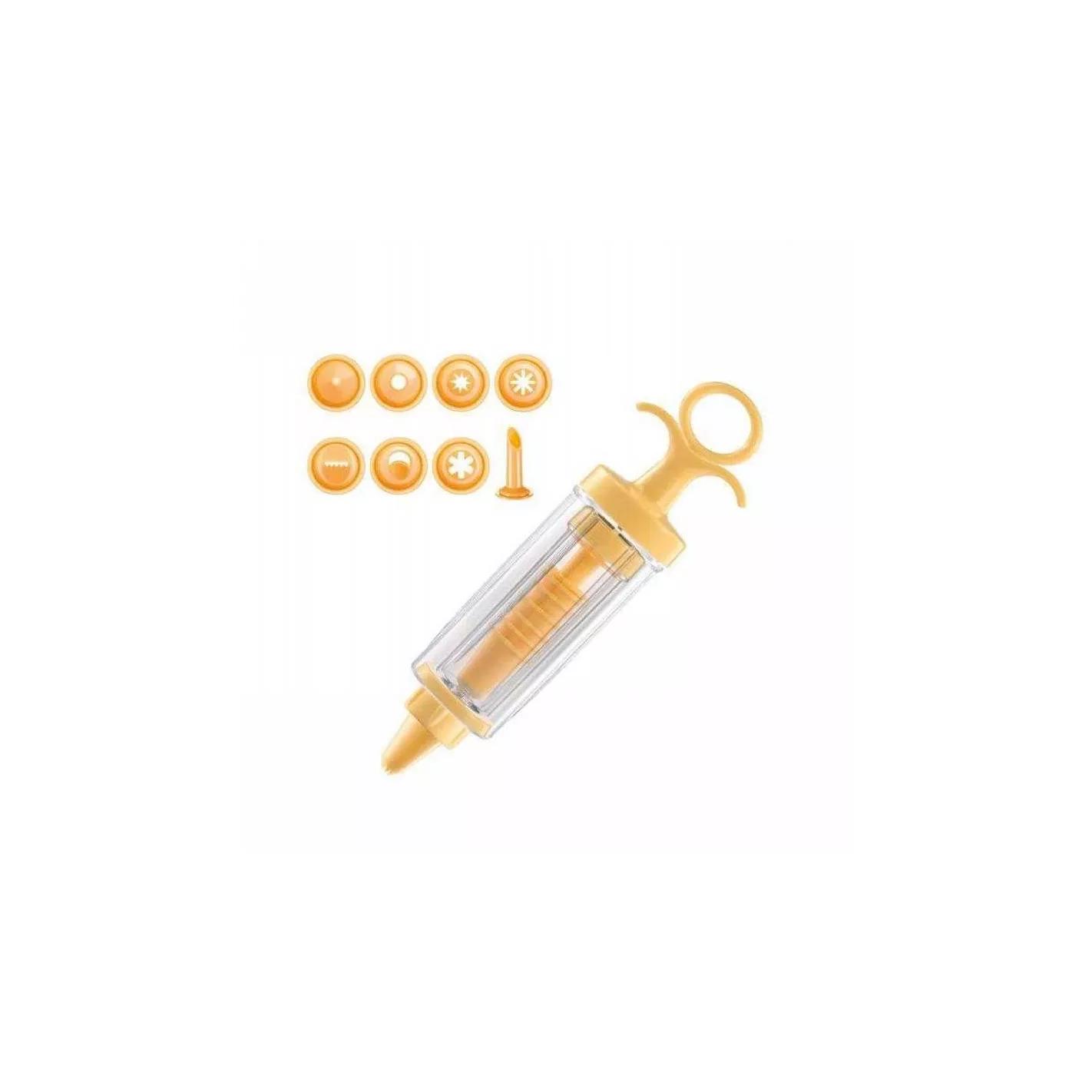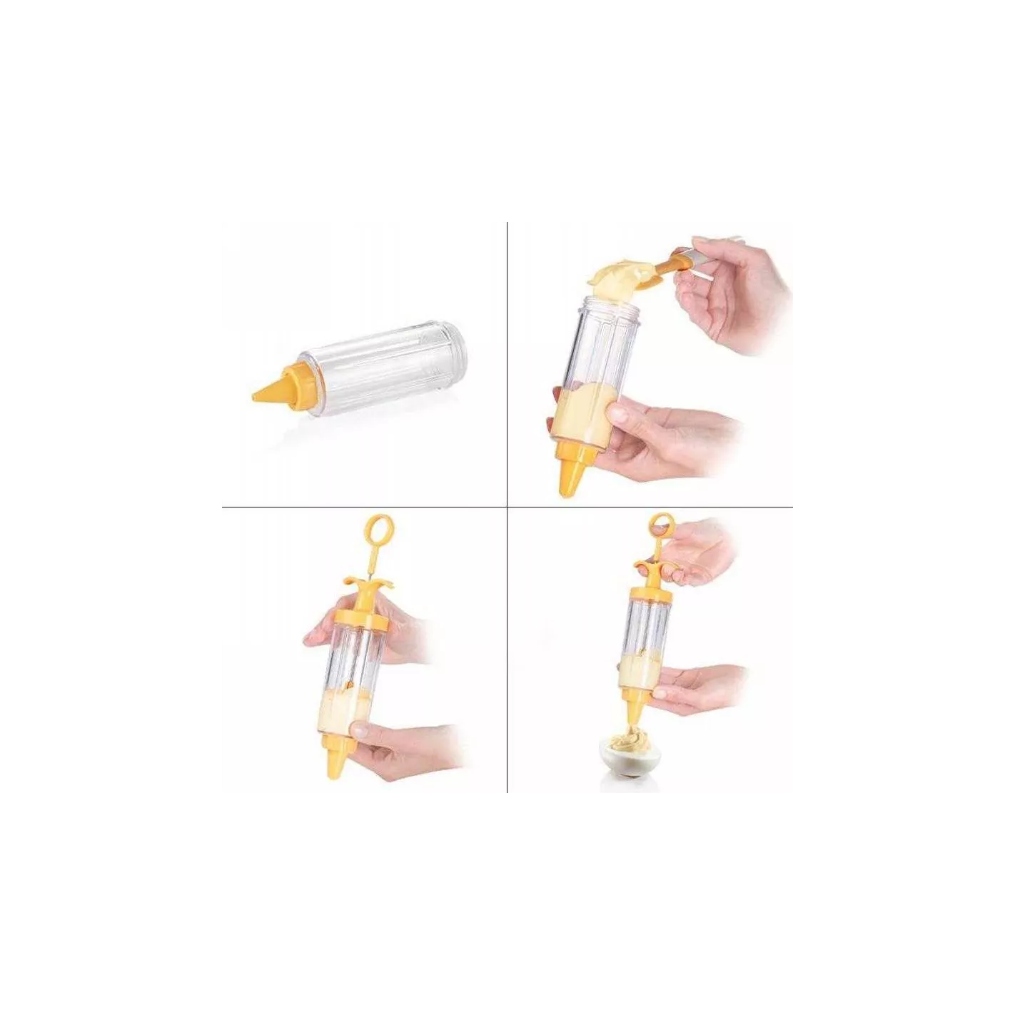Está pistola decoradora es un utensilio práctico y ergonómico diseñado para decorar pasteles, cupcakes, galletas o rellenar postres con precisión y facilidad. Su diseño de tipo jeringa permite un control óptimo del flujo de la crema, glaseado o relleno, logrando acabados profesionales sin esfuerzo.