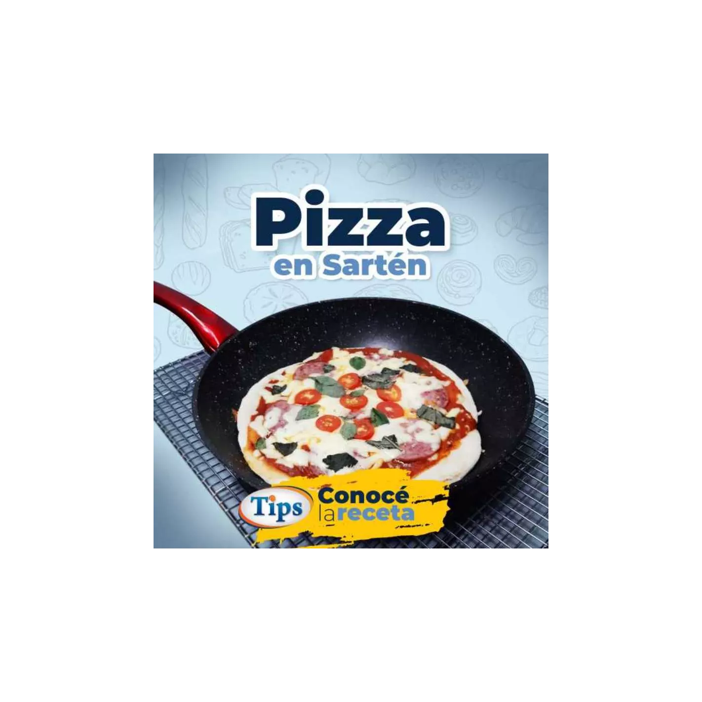 5.Luego de este tiempo, dividimos en dos porciones iguales, estiramos con un grosor de unos 3 mm, la colocamos el sartén ya caliente, dejamos que se dore por un lado, le damos vuelta y colocamos salsa, colocamos, queso, y los ingredientes al gusto, tapamos el sartén y dejamos solamente hasta que el queso se haya fundido.