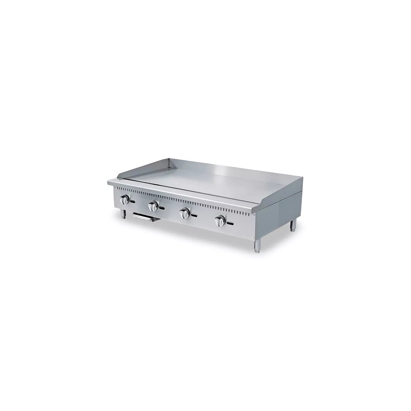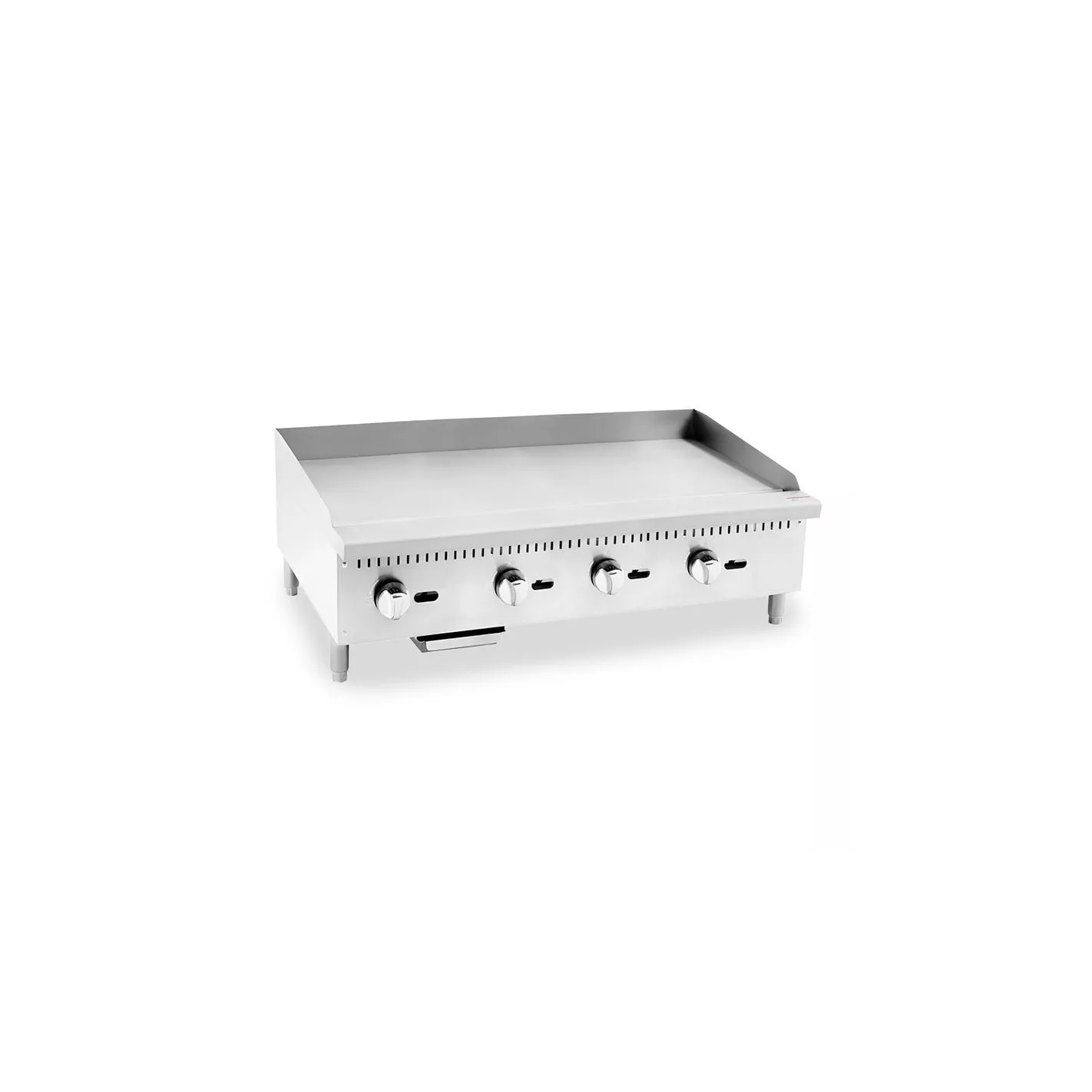 Preparando tocino para la multitud del desayuno o hamburguesas y cheesteaks para la fiebre del almuerzo, esta plancha de encimera está diseñada para aprovechar al máximo los espacios pequeños como comensales y puestos de comida. Con durabilidad y versatilidad en mente, este modelo es una gran adición a su equipo de cocina. Con (4) quemadores en forma de U de 30,000 BTU, esta superficie de cocción cuenta con una impresionante profundidad de 20 pulgadas que seguramente brindará todo el espacio de trabajo necesario. Además, la construcción de acero pulido es duradera y fácil de limpiar.