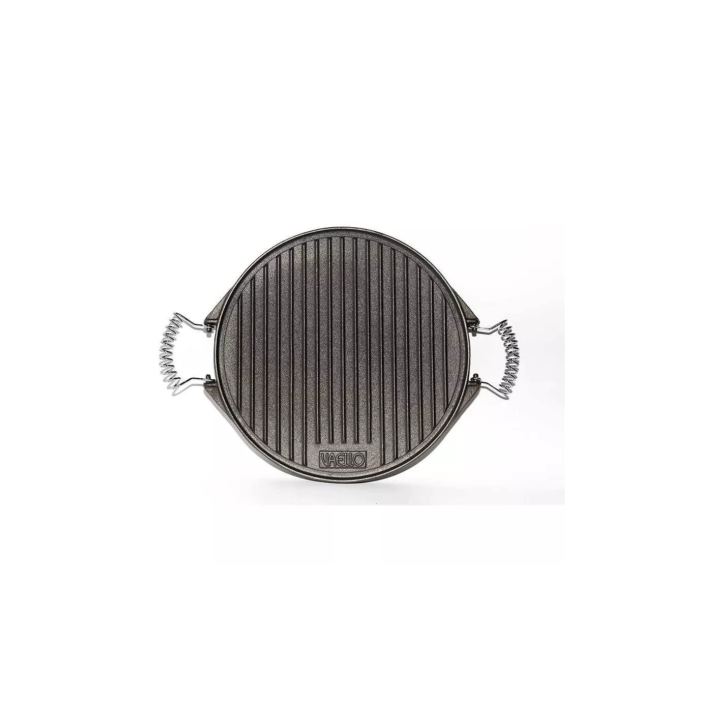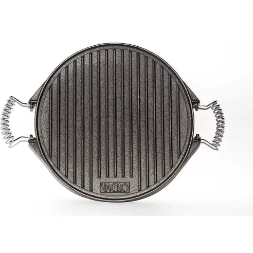 De hierro fundido. Se utiliza tradicionalmente para asar carnes, pescados o verduras. Parte posterior lisa utilizada para asar pescado. El mayor grosor de las placas hace que resistan bien el calor. La placa mide 32 centímetros de diámetro.