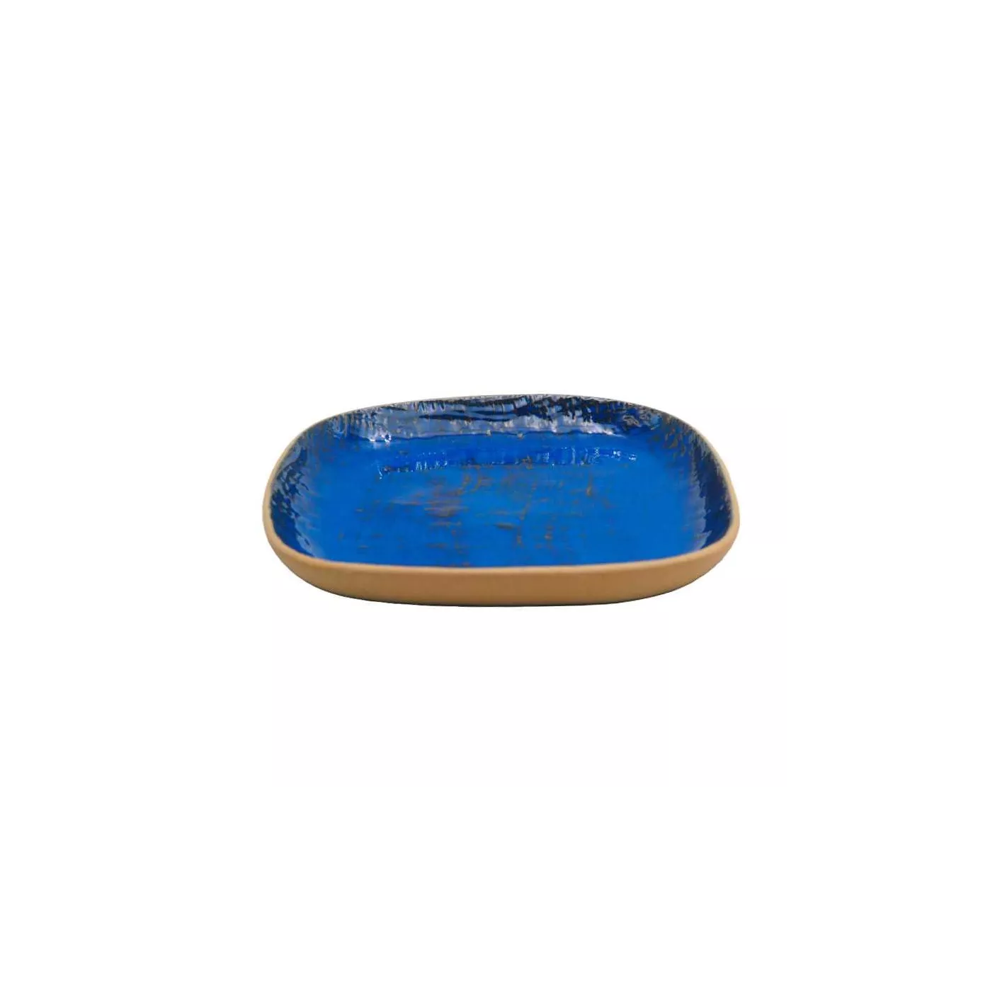 Plato de Ceramica Cuadrado Coupe de 19 Centimetros de Color Azul RUSTIC 20761-B