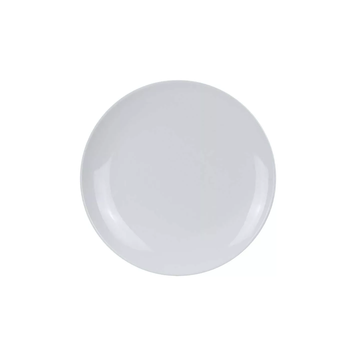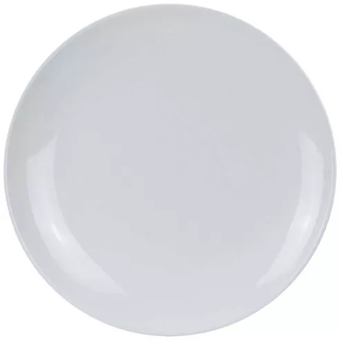 Hecho de melamina. Color blanco. Tiene una forma redonda con un diámetro de 10 pulgadas.