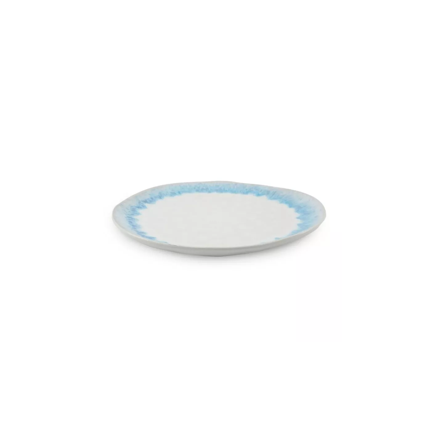 Plato Redondo de Ceramica 22 Centimetros Blanco con Celeste BELLARTE LDX-P00088