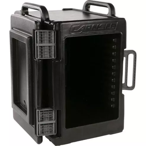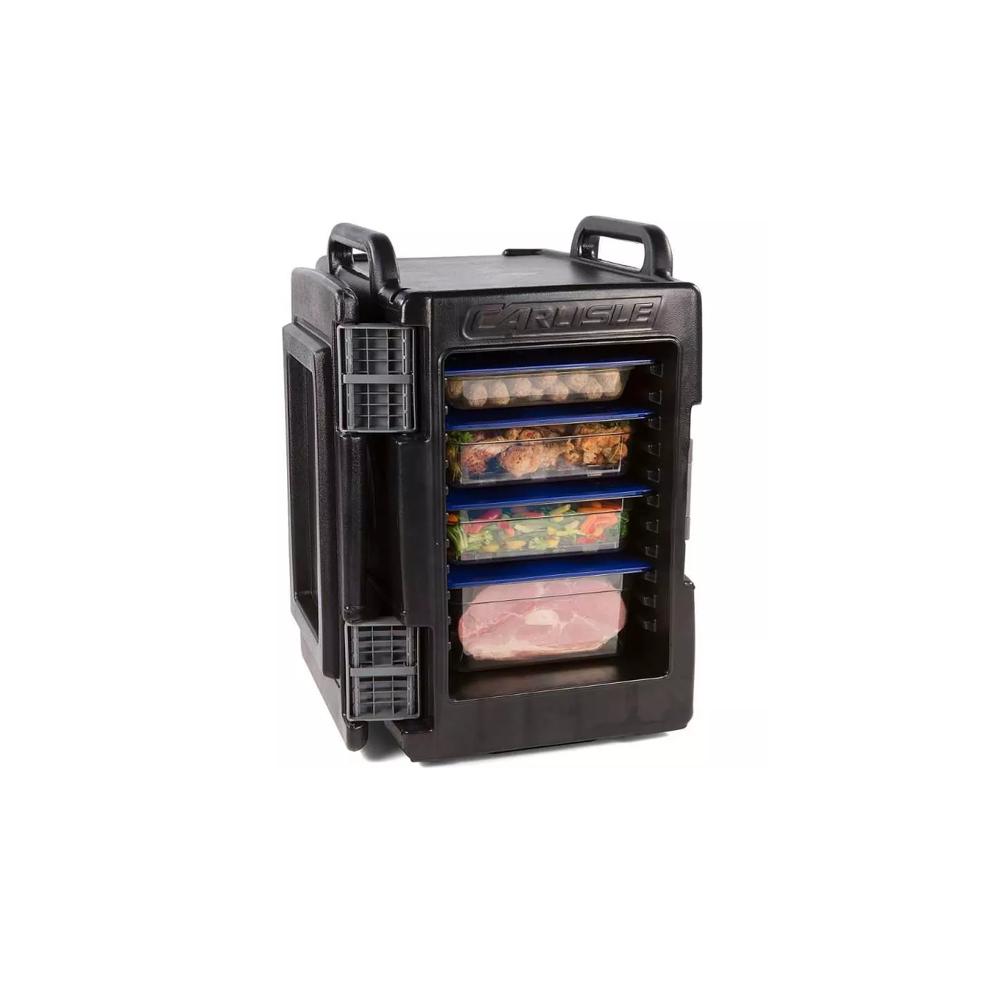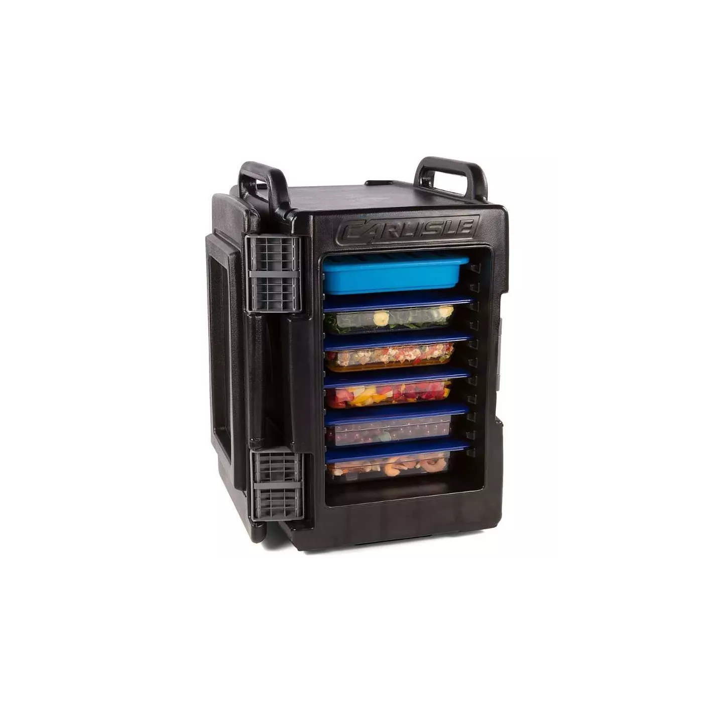 Capacidad de bandeja versátil: se adapta a 6 bandejas de tamaño completo de 2.5 pulgadas de profundidad, 12 bandejas de tamaño medio de 2.5 pulgadas de profundidad, 4 bandejas de tamaño completo de 4 pulgadas de profundidad u 8 bandejas de tamaño medio de 4 pulgadas de profundidad. Mantiene la comida caliente o fría por hasta 6 horas, el aislamiento de espuma gruesa entre las paredes de polietileno reforzado mantiene el aire caliente o frío dentro del portador. Rango de temperatura de -40° a 180° grados F. El diseño de cierre empotrado mantiene un sellado hermético y soporta el uso diario