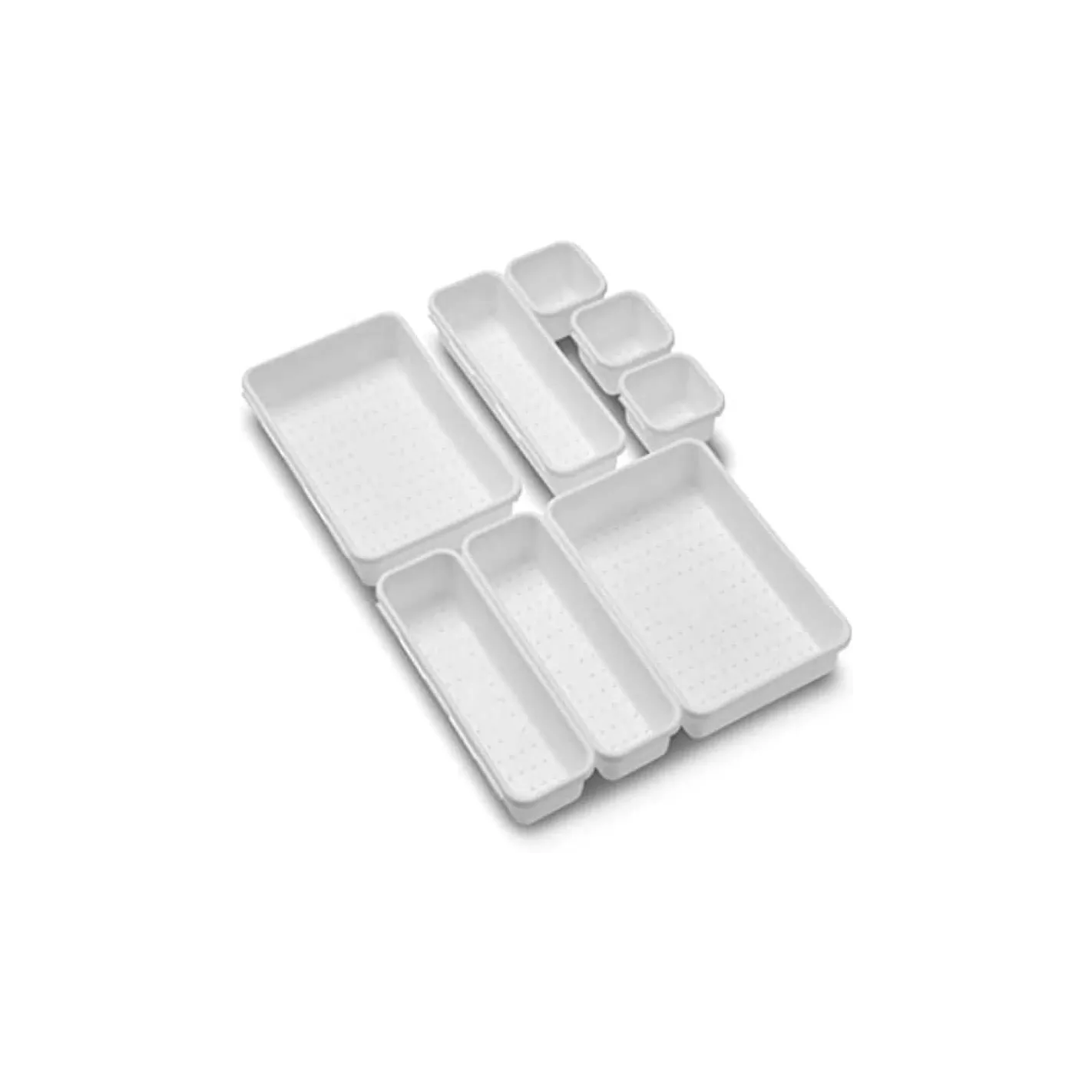 Mantén organizados los artículos de todo tu hogar con el paquete de contenedores entrelazados de Madesmart. Organiza perfectamente todo, desde suministros de oficina hasta cubiertos de cocina, y utiliza los pequeños recipientes para guardar bandas de goma y otros objetos pequeños. Mientras que los compartimentos más grandes son ideales para almacenar perfectamente herramientas y utensilios de cocina. Con este versátil organizador de cajones, las posibilidades son infinitas para organizar todos los elementos esenciales de tu hogar.
