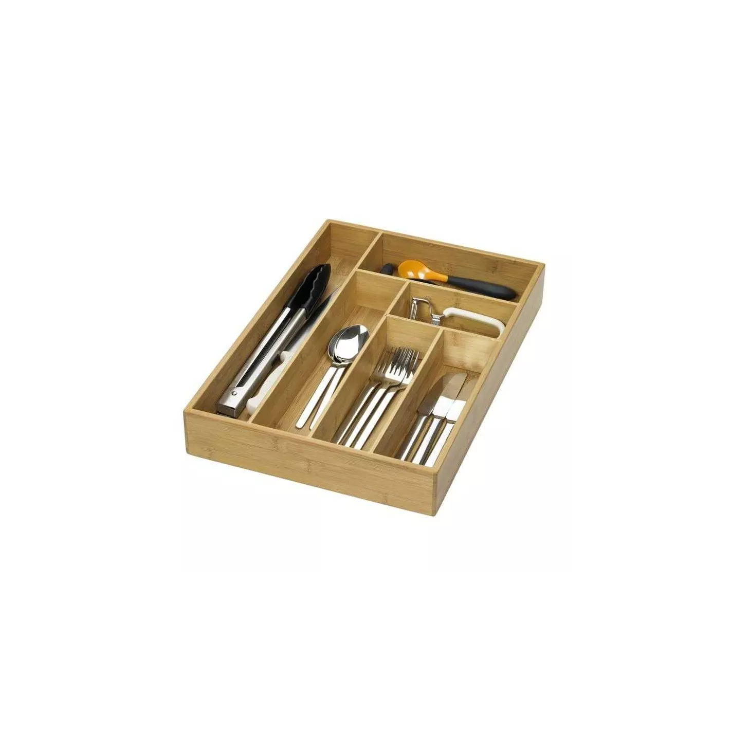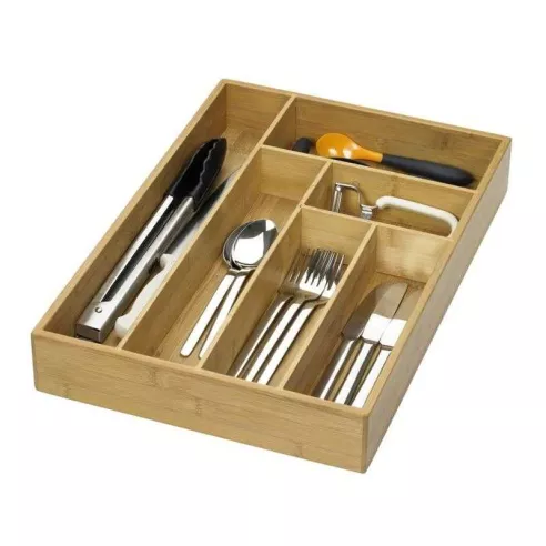 Con esta bandeja para cubiertos, demuestra una vez más que el diseño hermoso y la calidad no tienen por qué ir necesariamente de la mano con la explotación de los recursos naturales. Al elegir la materia prima bambú de rápido crecimiento, ha hecho una contribución positiva al medio ambiente con la gama ZENA. Los generosos compartimentos de calidad estable garantizan el lugar perfecto para sus cubiertos de alta calidad. Duradero, estable y ecológicamente sensible.
