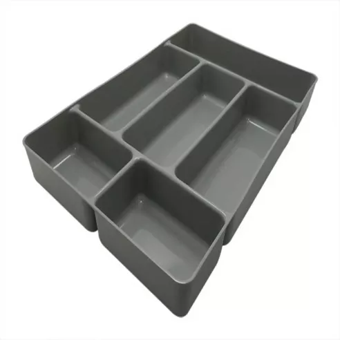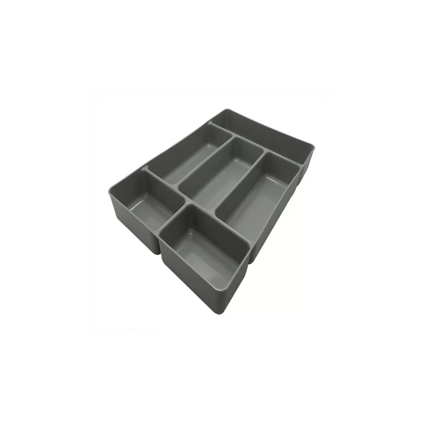 Porta cubierto con 6 cavidades para sus necesidades es muy presentable y sirve para organizar su cubertería. Su fabricación del material es en plástico muy resistente a los golpes y su color gris le hace muy versátil para recoger y organizar su cubetería. Es apto para utilizar en cocina principal, de su restaurante, de su bar y donde desea utilizarlo.PESO NETO: GRAMOS = 220
