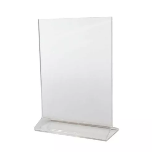 El porta menú está diseñado para poder colocar dentro un menú que tenga las medidas de 5 x 7 pulgadas, que sea rectangular y se coloque de forma vertical. Además de eso, está fabricado con material acrilico de alta calidad.
