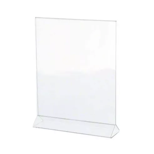 El porta menú esta diseñado para poder colocar dentro de él un menú que tenga las medidas de 8 x 11 pulgadas, que sea rectangular y se coloque de forma vertical. Ademas de su eso esta fabricado con material acrilico de alta calidad.