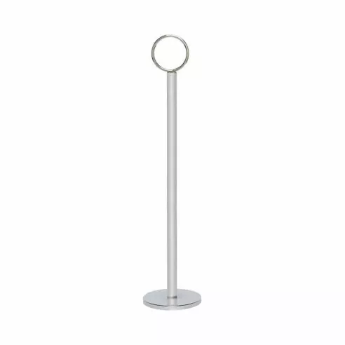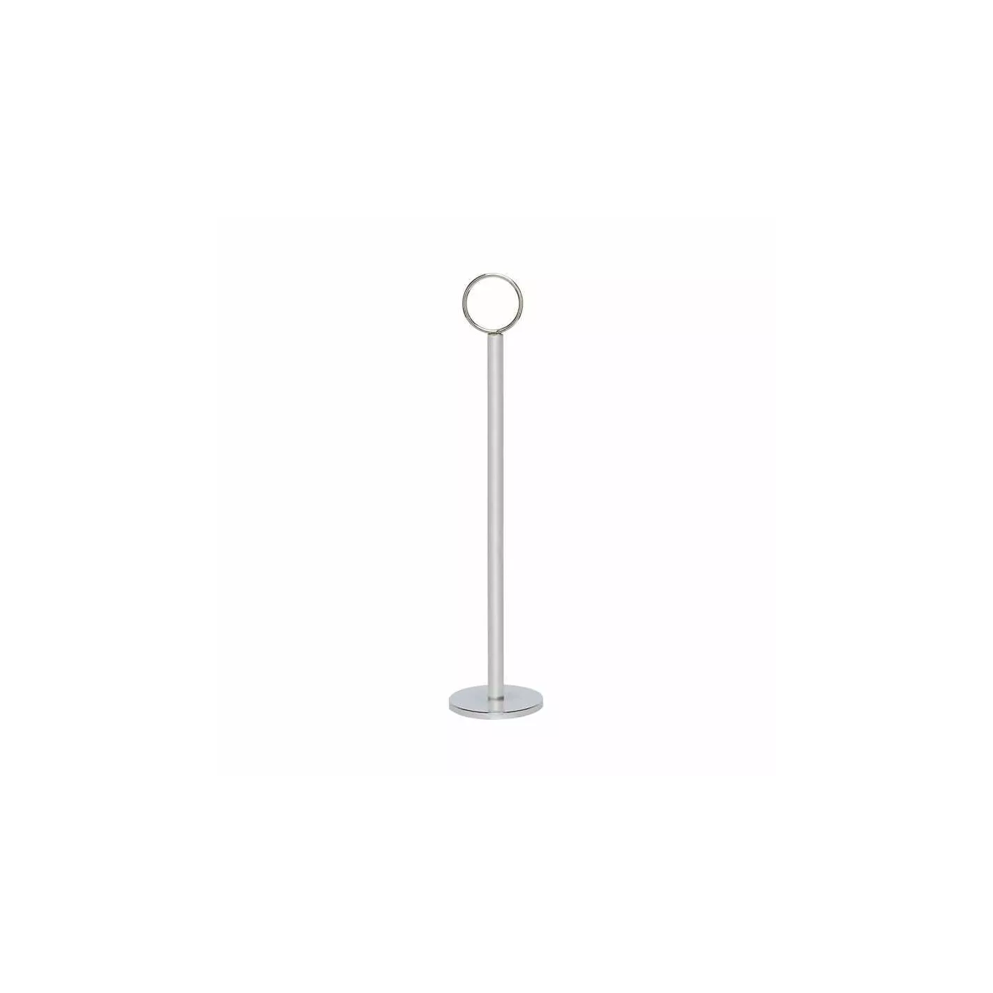 Una excelente adición a cualquier hotel, restaurante o establecimiento de servicio de alimentos, el porta números 12 pulgadas es perfecto para mostrar números de mesas o anuncios especiales. Con una elegante construcción de acero inoxidable cromado, esta pieza agregará un toque exclusivo a una variedad de configuraciones de mesa. Construido para soportar un uso comercial de gran volumen, este soporte para tarjetas es resistente a la corrosión y excepcionalmente duradero.