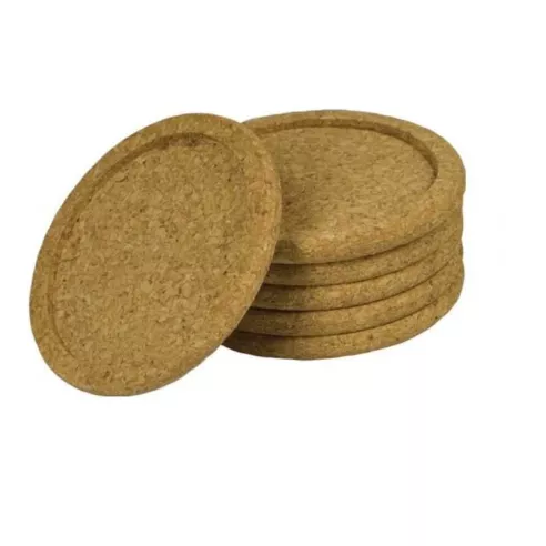 Juego de 6 posavasos de corcho de Fox Run. Complemento perfecto para cualquier área de bar. Fondo escalonado. Mantenga sus mesas y barra libres de anillos de agua.
