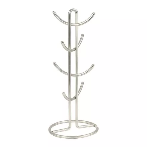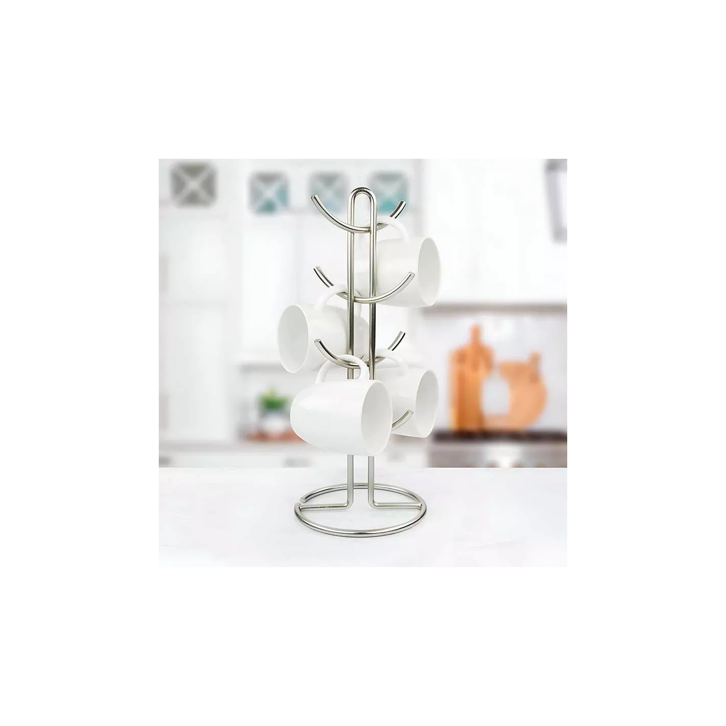 El soporte para tazas tiene capacidad para ocho de sus tazas de café o té favoritas, y cada rama se inclina hacia arriba para sujetar cada taza de forma segura. Cree una estación de café en la encimera con el soporte para tazas o despeje el espacio de su armario moviendo tazas adicionales a su encimera. Exhiba su colección de tazas de té o guarde sus tazas de café de vidrio o cerámica en la encimera. El soporte para tazas sostiene las tazas por las asas, por lo que el soporte puede acomodar una variedad de tamaños de tazas a la vez. La base de acero sólido se asienta de manera uniforme sobre la mesa sin inclinarse ni inclinarse.