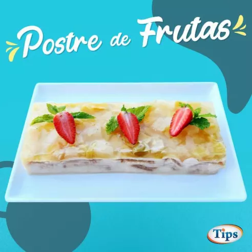 3-Colocamos una capa de la mezcla en un molde de 25x25 cm, luego colocamos una capa de galletas previamente pasadas por jugo de frutas, y así seguimos alternando capas hasta terminar con las galletas y la mezcla.