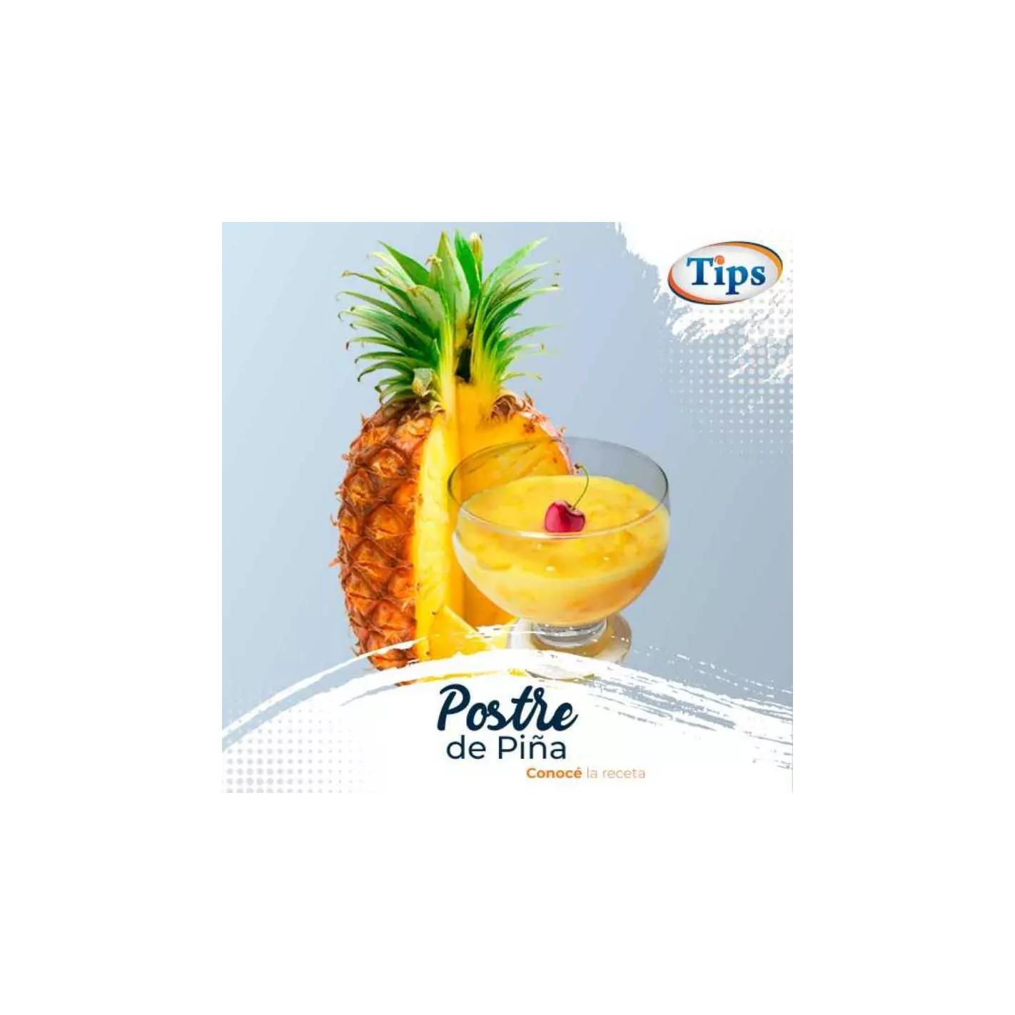 4-Colocamos la gelatina 30 segundos en el microondas y la agregamos a la piña, seguidamente incorporamos la fécula, la crema dulce y mezclamos hasta que espese.