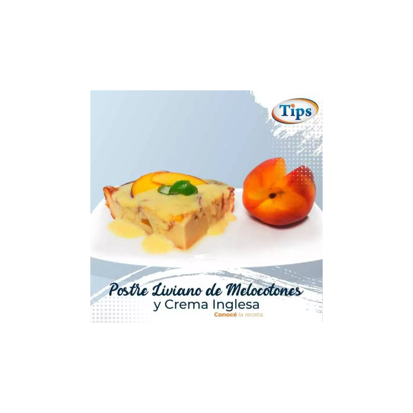 1-En un recipiente mezclamos el melocotón con 2 cucharadas del total del azúcar, mezclamos bien, luego colocamos las tajadas en el fondo de un molde engrasado de 20 cm, y reservamos.