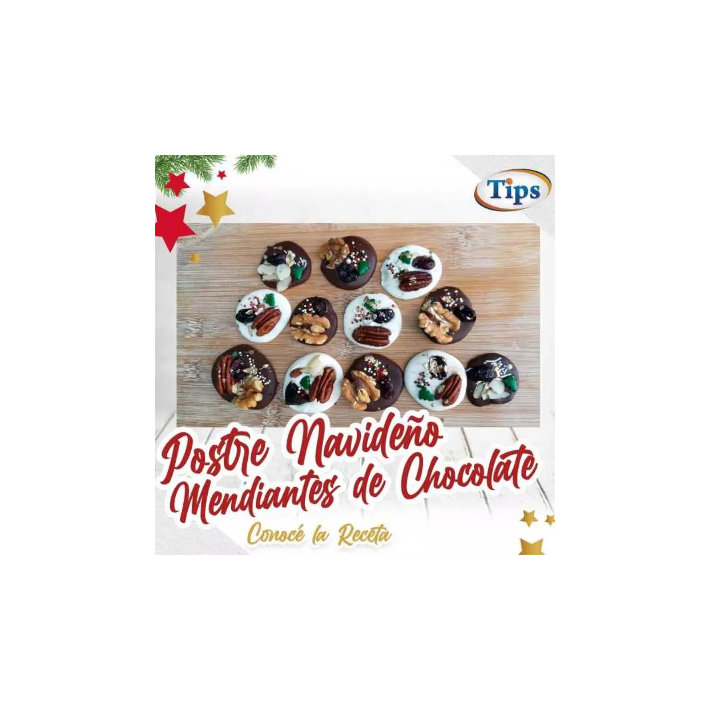 2-En una bandeja con papel parchment ó tapete de silicón, colocamos con una cuchara pequeñas porciones de chocolate, luego decoramos con confitillo, semillas y frutos secos en forma ordenada.
