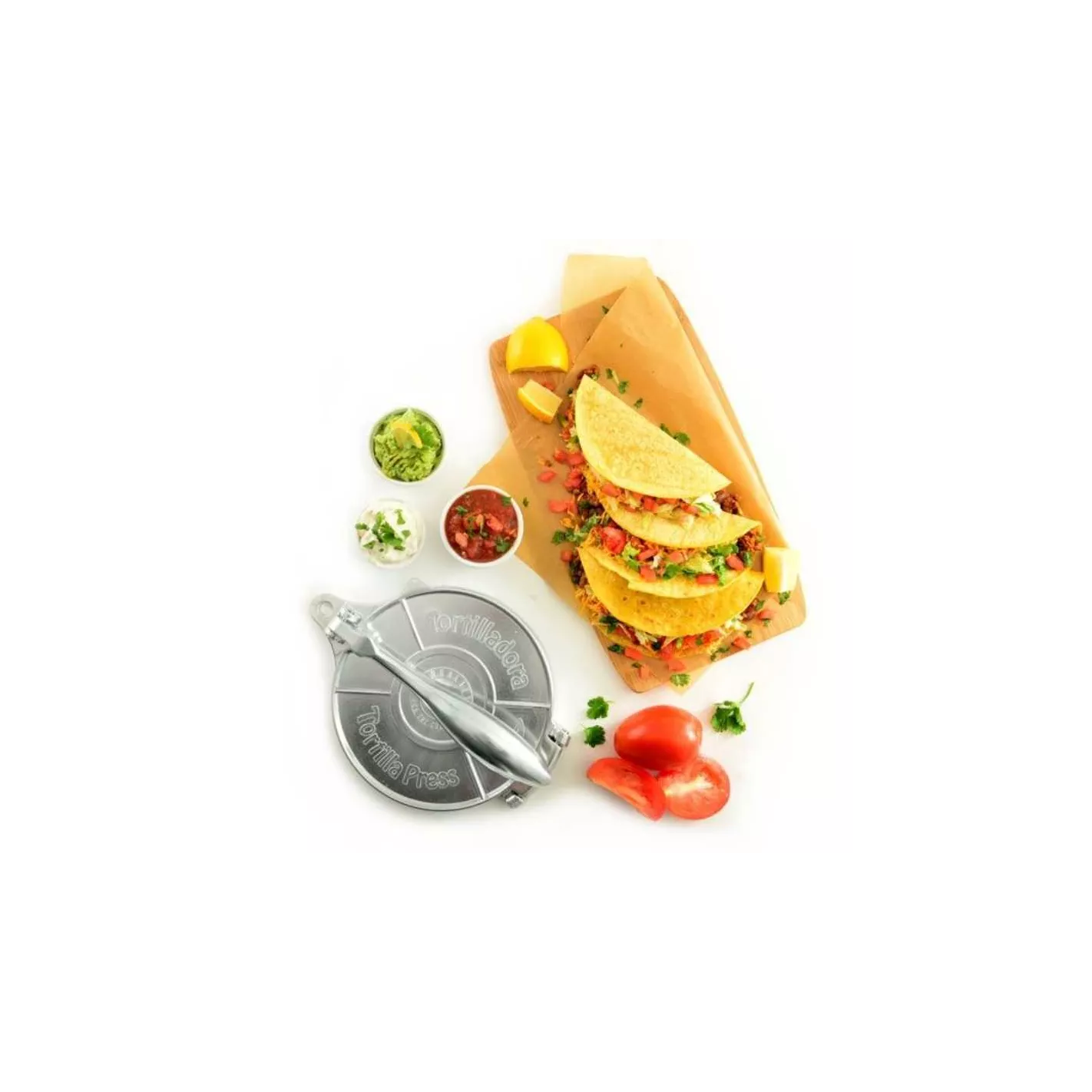 Esta prensa tradicional es resistente, duradera y tiene un excelente apalancamiento. ¡Ideal para grandes cantidades! Simplemente inserte una bolita de masa y haga presión. Fácil de usar, fácil de limpiar, compacto para un fácil almacenamiento.