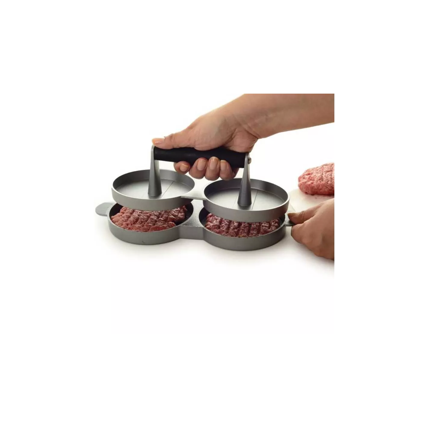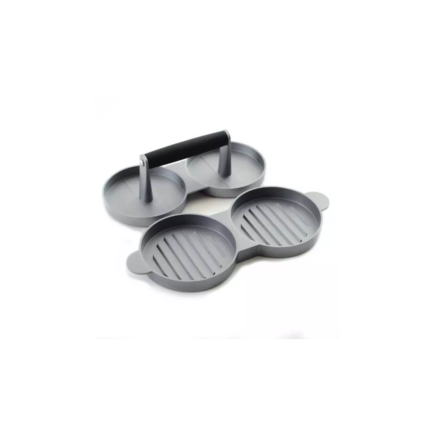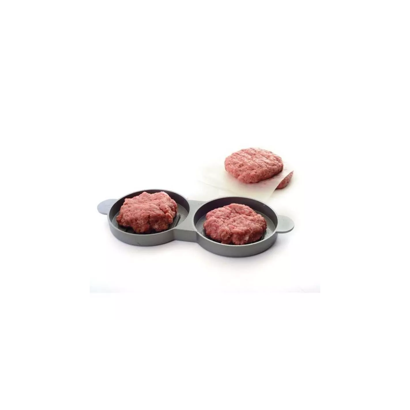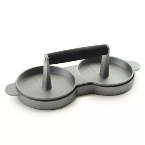 ¡Prepara hamburguesas con calidad de restaurante con esta tradicional prensa para hamburguesas! Ideal para hacer hamburguesas de carne de res, pavo o vegetales, esta prensa crea dos hamburguesas uniformes a la vez. Fabricada con aluminio duradero y resistente, esta prensa es fácil y cómoda de usar. Cubra con papel pergamino o papel encerado para transferirlo fácilmente a su refrigerador o congelador
