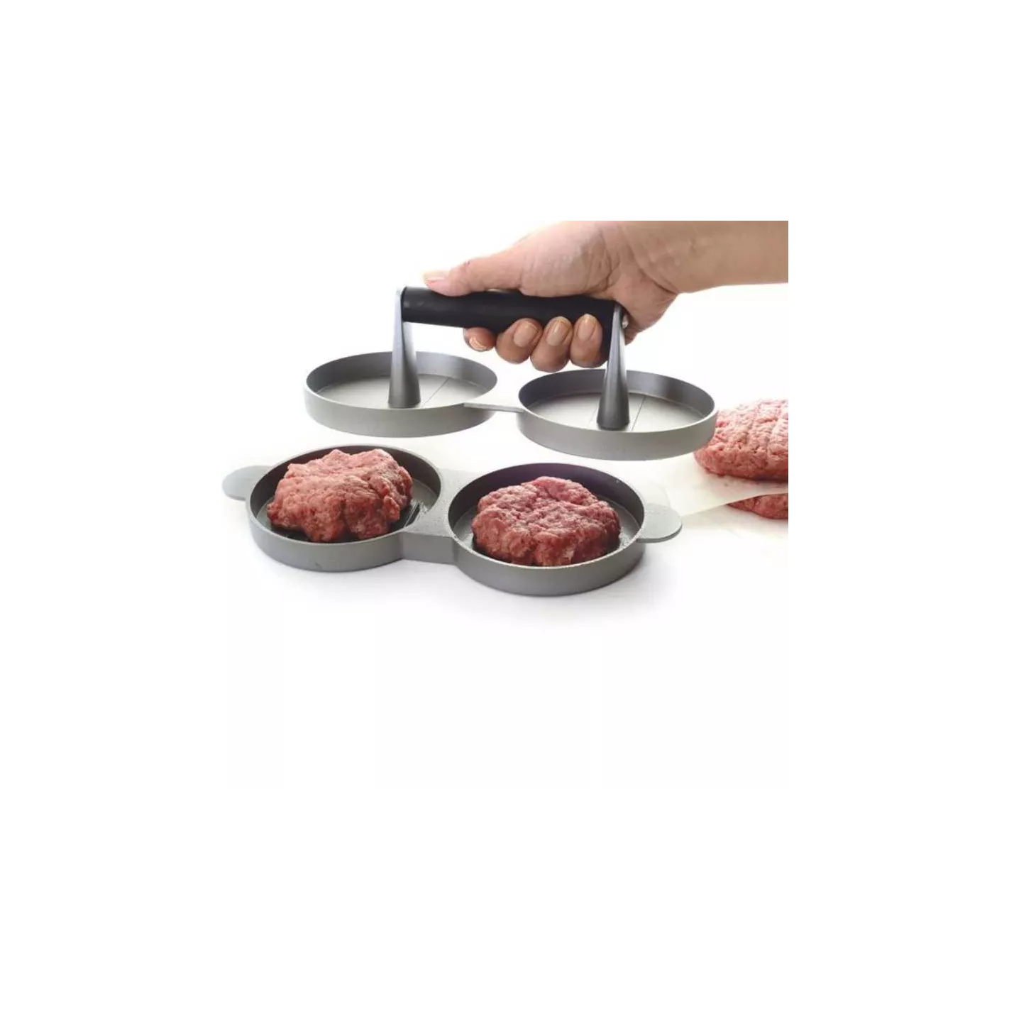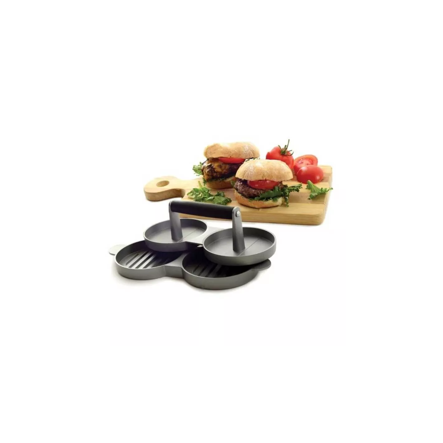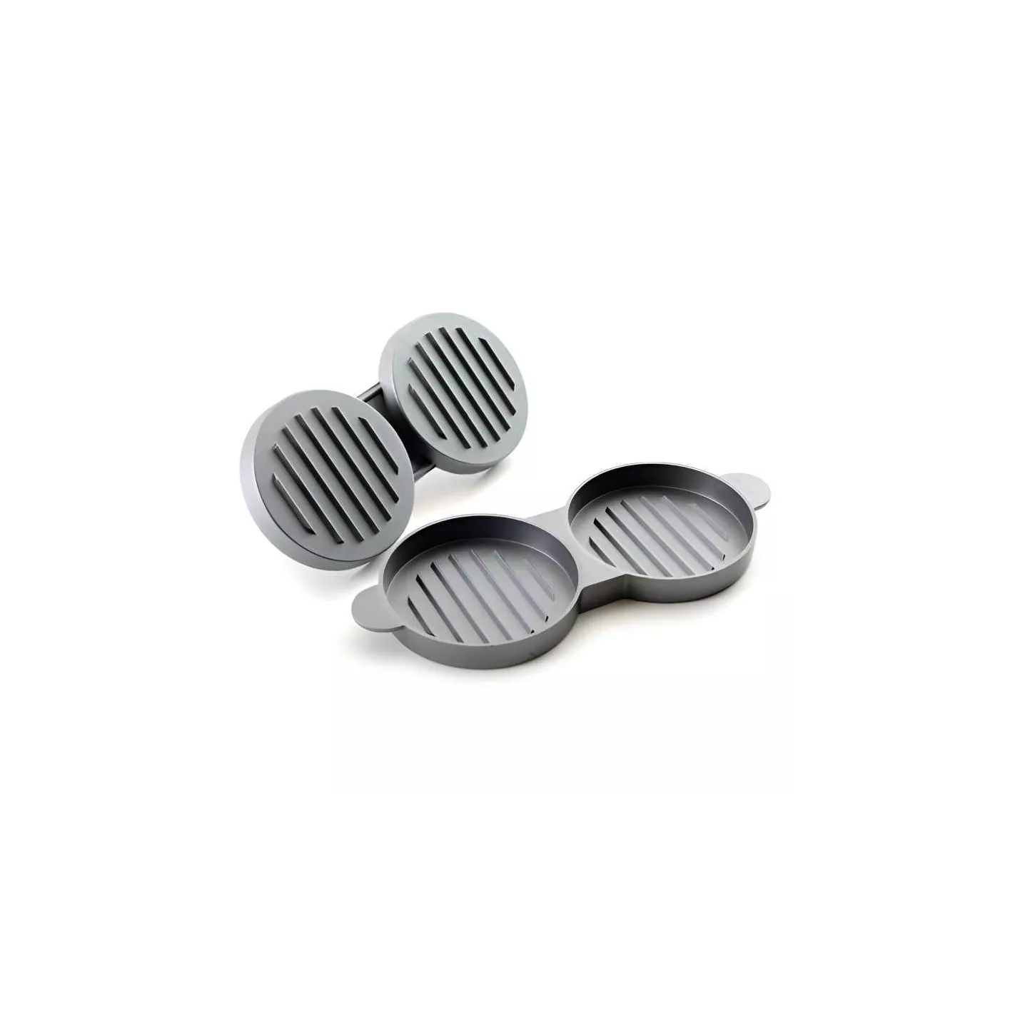 ¡Prepara hamburguesas con calidad de restaurante con esta tradicional prensa para hamburguesas! Ideal para hacer hamburguesas de carne de res, pavo o vegetales, esta prensa crea dos hamburguesas uniformes a la vez. Fabricada con aluminio duradero y resistente, esta prensa es fácil y cómoda de usar. Cubra con papel pergamino o papel encerado para transferirlo fácilmente a su refrigerador o congelador