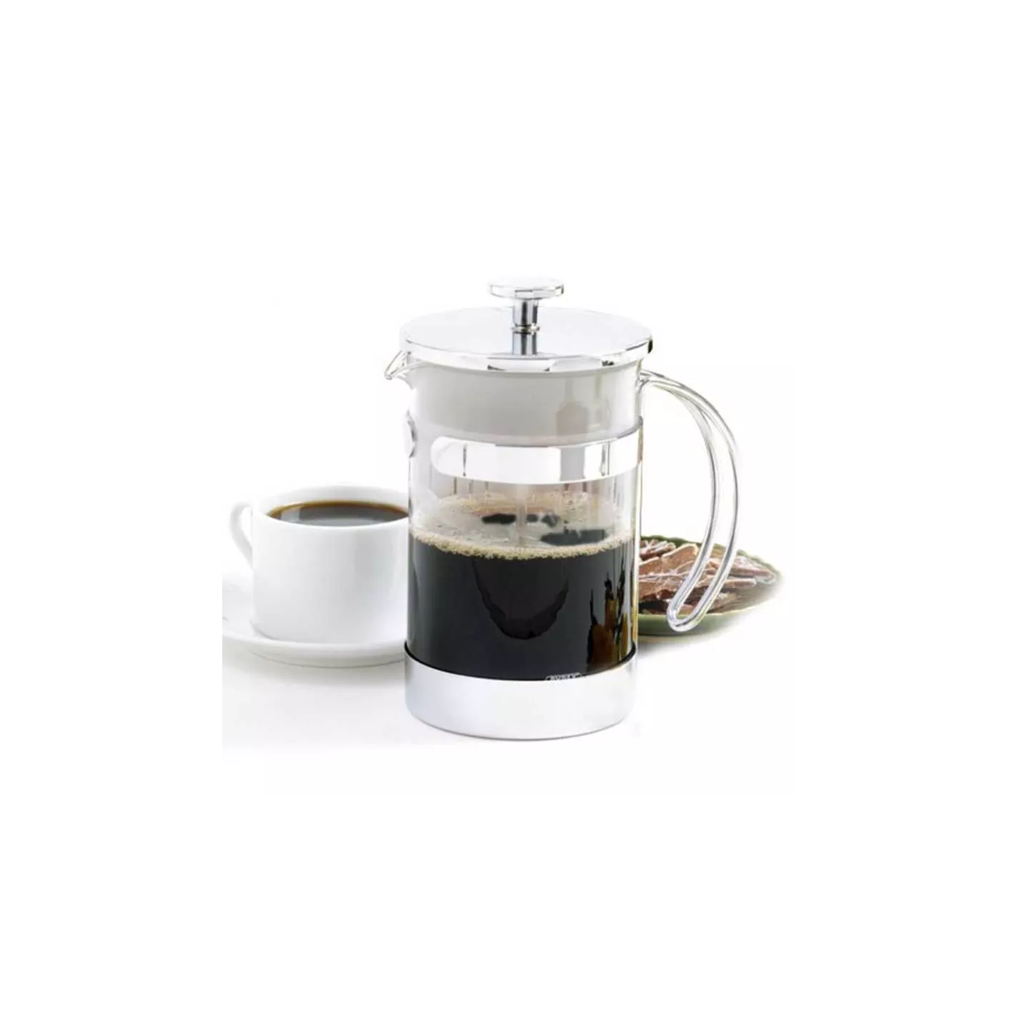 Diseño moderno y práctico, prepara café y té rico y sabroso. Use cafés regulares o de molienda gruesa con filtro de metal reutilizable. Filtro adicional en la tapa para asegurarse de que no caigan restos sueltos en las tazas.CAPACIDAD: ONZAS = 25