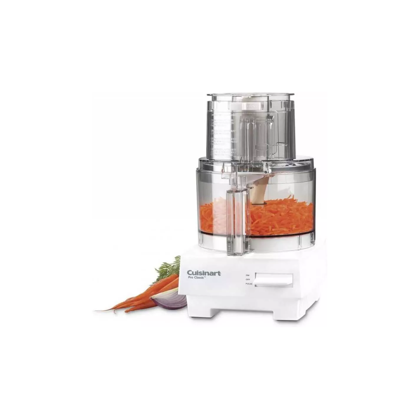 El procesador de alimentos Pro Classic de 7 tazas hace todos sus platillos favoritos, desde salteados y ensaladas de platos principales hasta mantequilla de maní y pan casero. Compacto y fácil de usar, viene con un tazón de trabajo grande de 7 tazas para satisfacer todas sus necesidades de procesamiento, una cubierta con un tubo de alimentación grande para cortar y triturar sin cortar previamente, cuchillas y discos de acero inoxidable y una colección de recetas. También viene con una cubierta plana adicional para procesar en el fondo del recipiente