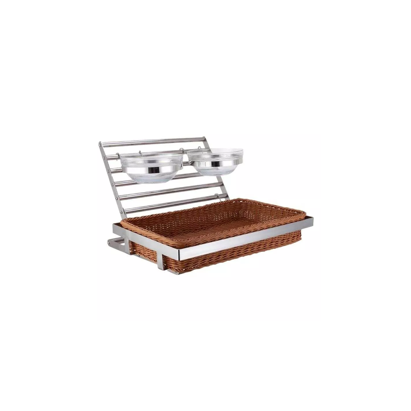 Este soporte de 2 niveles proporciona un amplio espacio para utencilios, alimentos por lo que es la solución perfecta de almacenamiento de productos para tu encimera. Ideal para buffet, restaurantes, catering.